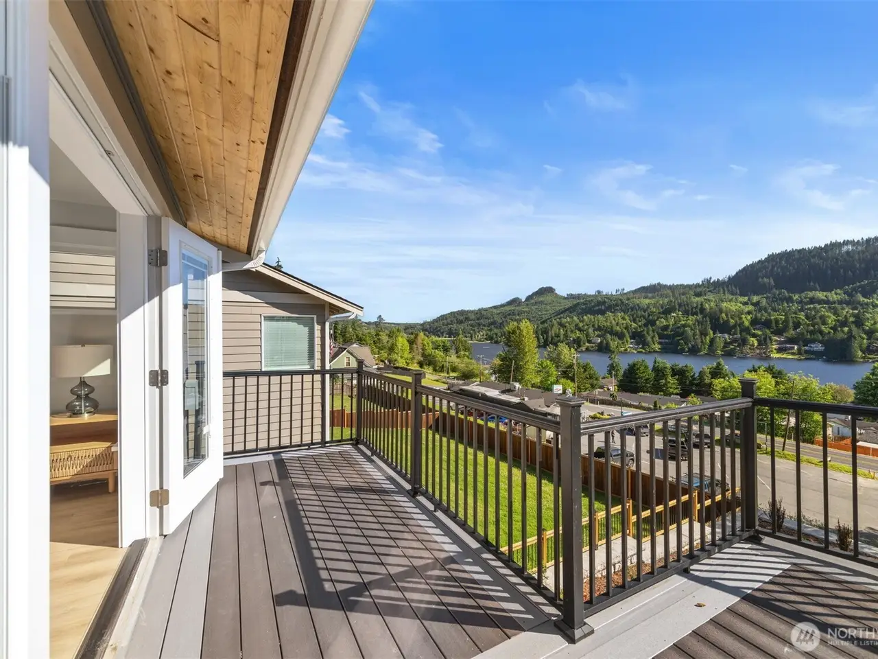 Full-length deck with lake views