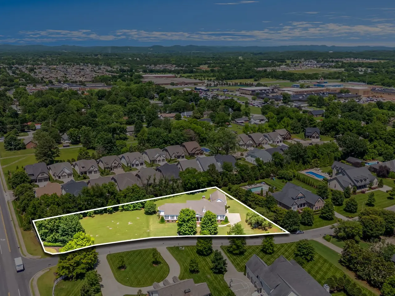 Chef's kitchen had a makeover! New quartz island, subway tile & new lighting! Exclusive opportunity to own this expansive, thoughtfully designed one-level home complete with a 1,200 sq ft separate living or working space. This meticulously cared for & quality-built, one owner home, is perfectly situated on picturesque Lovelace Lane. With over an acre lot & spacious backyard with mature trees, it is ideal for creating your own private oasis or adding a pool. Engineered hardwood floors, coffered ceilings & extensive trim. Four oversized bdrms with ensuite baths are thoughtfully tucked away from the main living areas, allowing for personal privacy. The open-concept design includes distinct spaces for living, dining, and family room, creating an ideal layout for both entertaining and daily living. Upstairs, is a generous bonus room with a 1/2 bath and over 500 sq ft of walk-in attic space, providing ample room for storage and future expansion. The main living area was designed to age in place, offering long-term comfort and accessibility. The home features a 3 car side entry garage, a spacious screened-in back porch, paver patio, fire pit of Tennessee flagstone, and a gas line for a grill, perfect for outdoor entertaining. Attached to the home is a 1,200 sf bldg with a private entrance: a rare and versatile space. This area can serve as a media room, office, studio, guest suite, pool house, or in-law/multi-generational living quarters. The layout allows for the addition of a kitchenette and a shower to the existing half bath, giving maximum flexibility. Built for efficiency and sustainability, the home features James Hardie fiber cement siding, triple-pane windows, tankless water heaters, and foam insulation. Additionally, a storm shelter is integrated into the original concrete construction of the home, offering peace of mind. A one-of-a-kind home that delivers in every way-comfort, craftsmanship, functionality, and flexibility in a serene and convenient location.