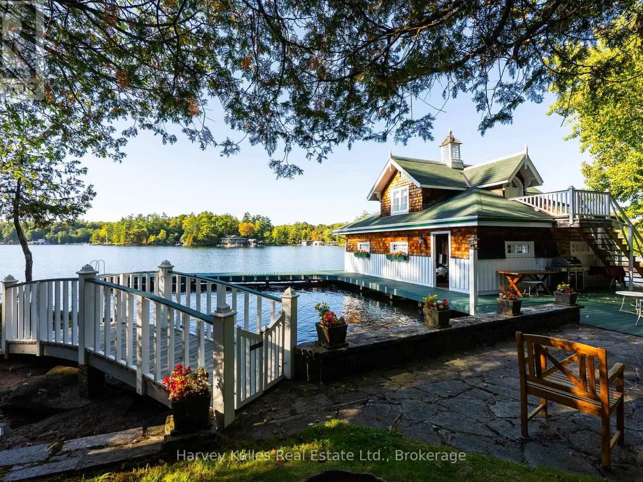 Offered to the market for the very first time, Birchcove is a notable historic Lake Rosseau Landmark offering unparalleled prestige on the Iconic summer sunset shores of Windermere. Family held for 5 generations this Heirloom jewel is elegantly anchored in finer provenance, outstanding views, idyllic shoreline compositions of rocky points, sandy shores, irreplaceable twin cottages and twin boathouses all enveloped amid exquisite privacy of curving shoreline. A rarefied offering. The 6 Bedroom Principal Cottage circa 1906 beautifully presents in it's magical fairytale feel with warm bass wood interior, Romantic dining room with hand carved FP mantle, gorgeous floor to ceiling Living rm FP, 2 main floor primary's, chic vintage kit, dreamy window frames throughout both storeys & Gingerbread scalloped terrace lk doors opening everywhere to a classic wicker clad waterside Olde Muskoka Verandah. A 3 bedroom secondary Cottage with full kitchen complements this generational Estate where exclusivity and memories have been etched into every timber. Stunning level lands for children's play and cocktail parties are accented by ancient stone paths and outstanding waterside stone sunset terrace framed by an ancient stone shore wall. Two boathouses gift 5 enclosed slips and splendidly bookend a whimsical walking bridge that is an iconic favourite of these shores. These waterfront structures are irreplaceable with long antique boat slips in one (30') w boatport & sailboat ramp, 2nd hosts more slips and charming space atop, all boasting extensive docking and lounging areas sun-drenched with bountiful views to Windermere and beyond. Presented for sale for the first time ever this is a singular opportunity in a very Historically elite enclave of South Lake Rosseau. Accessed by a Narnia like woodsy road into and thru one of Muskoka's most prestigious neighbourhoods. Birchcove fully furnished is where legacy and landscape fully meet amidst glorious summer sunsets. (id:16999)