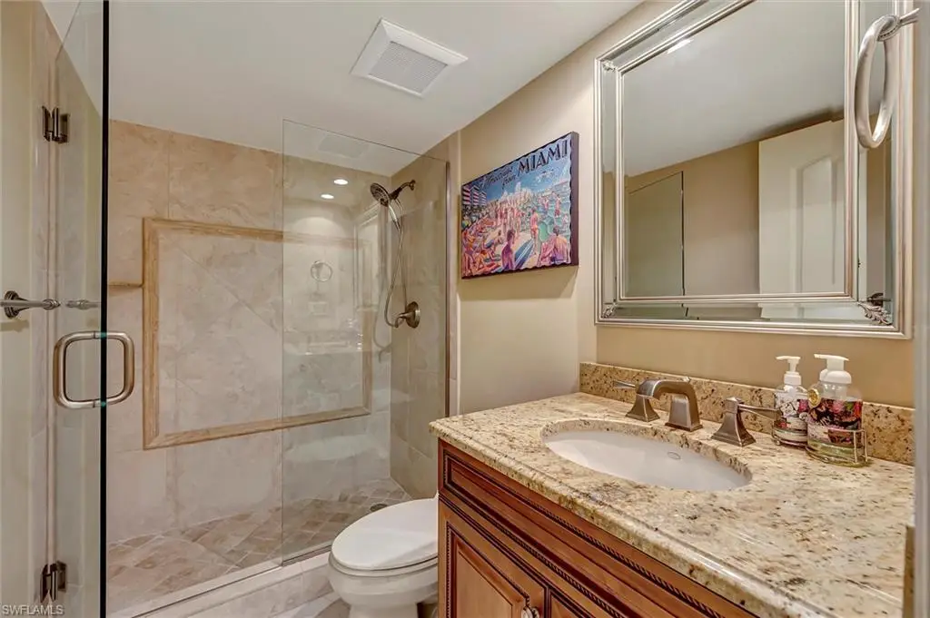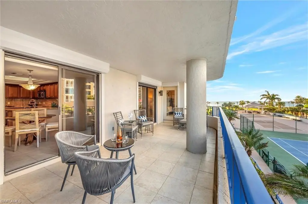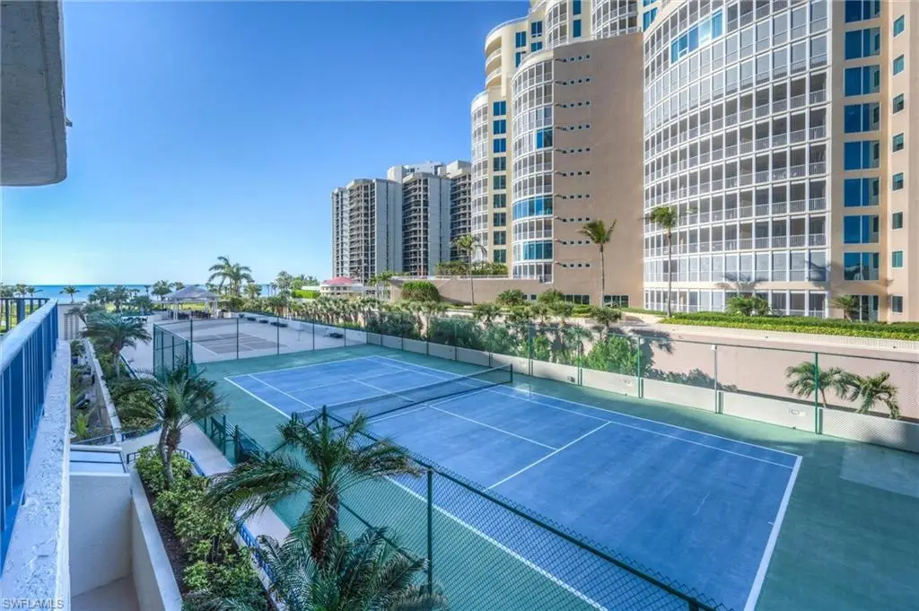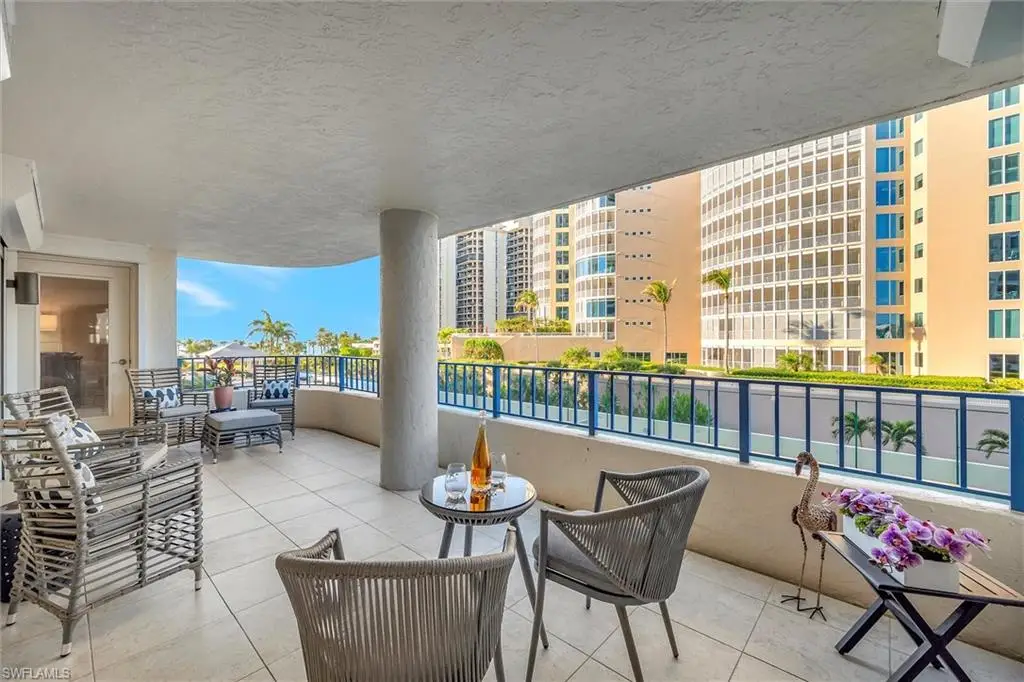 If you dream of living on a white sandy beach and feeling gulf breezes, if you're not into home maintenance, if you desire an easy and active lifestyle, if you like sunbathing, beach yoga, pickleball or boating, the Solamar in Park Shore, is the ideal home and escape you are looking for! Come and enjoy the gulf view from the oversized balcony of this beautiful 2 Bed/2 Bath with 1750 SF u/a located on the 4th floor of the Solamar in the heart of Park Shore. This perfect, yet comfortable condominium features tile flooring throughout the living areas, a spacious kitchen with striking granite countertops and a full granite backsplash, stainless steel appliances, pantry, updated chandeliers and recessed lighting, a tiled lanai/balcony, full-size laundry room, extra-large storage closet, custom crown and base moldings, walk-in closet and 2 closets in the primary, a magnificent primary bath with a double vanity adorned with marble countertops, separate water closet with bidet, soaking tub & walk-in master shower. Decorated with a cozy modern flair, and offered TURNKEY. Absolutely no work is needed to move-in and enjoy the beach life. Solamar, is a 20-story prominent high-rise atrium building with a waterfall, reflecting pond and beautiful lighting along the Park Shore beachfront offering residents a blend of luxury and comfort. A full-time building manager, 24-hour lobby supervision, a solid reserve budget and no water damage from the recent storms make Solamar a buyer's favorite choice for value, amenities, and peace of mind. Solamar is a great fit for a variety of lifestyles and offers residents the option of reserving two guest suites, use of an impressive fitness center, a wonderful gulfside heated pool and spa overlooking the park, tennis and pickleball courts, a grilling and bar area, secure under-building parking garage with one deeded garage parking space and extra spaces, social, library and conference rooms and lush landscaping with many fountains. The Promenade, a 3-mile boardwalk along the gulf, is perfect for your morning outdoor exercise routine. An ideal location. Owners love the proximity to The Village Shops on Venetian Bay a premier waterfront complex filled with boutiques, bay side restaurants and a boat marina. Park Shore is also minutes to Naples famed 5th Ave, Waterside Shops and Mercato for more designer shops, five-star restaurants and pubs! Life is good at the Solamar.