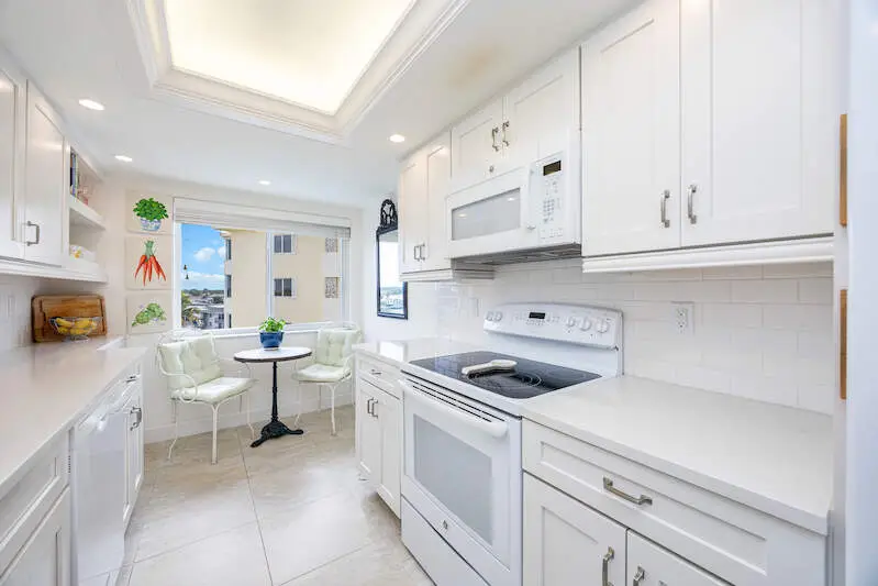 Discover Harborside West, where coastal charm meets modern comfort! This spacious three bedroom, 2.5 bathroom condominium encompasses over 1,700 square feet of living space with breathtaking views of Venetian Bay. Step inside to an expansive living room and glass-enclosed lanai, both showcasing stunning postcard-worthy views of the sparkling bay. The bright galley-style kitchen has been thoughtfully updated with modern cabinetry, countertops, appliances, and tiled flooring. The residence features two primary suites, each with en-suite baths and generous closet space, while the versatile third bedroom can serve as a guest room, home office, or den. The lanai, with stackable glass windows, offers year-round enjoyment-perfect for relaxing while watching boats glide by or dolphins play. For added comfort and ease, this unit includes an attached garage and a private storage closet! Convenient beach access is located just across the street, making coastal living a breeze. Residents of Harborside West enjoy a host of amenities, including a recently renovated social room, fitness center, hobby room, library, barbecue and picnic areas, fishing pier, resort-style pool, and ample storage facilities. The community also provides bike storage, a vehicle wash area, and sidewalks for leisurely strolls. Located in the sought-after Moorings neighborhood, this condo is steps away from Naples' pristine beaches and just moments from upscale shopping and dining at Venetian Village. Embrace the best of Florida living in this move-in-ready residence!