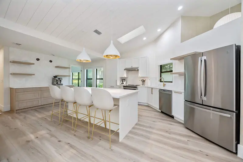 This centrally located, fabulous 3+den residence has been incredibly transformed from floor to ceiling with a stunning selection of finishes and materials. Blending style, practicality, and a touch of playful creativity, this home showcases thoughtful design choices throughout. All major appliances, along with the water heater and AC, have been replaced. New impact windows and doors create a protective core. Other desirable benefits include dramatic floor-to-near-ceiling windows and glass doors, which provide a full view of the backyard and maximize the natural light that floods into the living space. These are pre-wired for future automatic window and door coverings if you choose. Skylights also provide an abundance of natural light throughout the property. Lastly, the property is located in X Flood Zone, providing an added comfort against unwanted exposure. The quality of these improvements was initially intended for the current owner. The new owner will reap the rewards of this purposefully curated home, which anticipates the expectations of the world's most selective clientele.