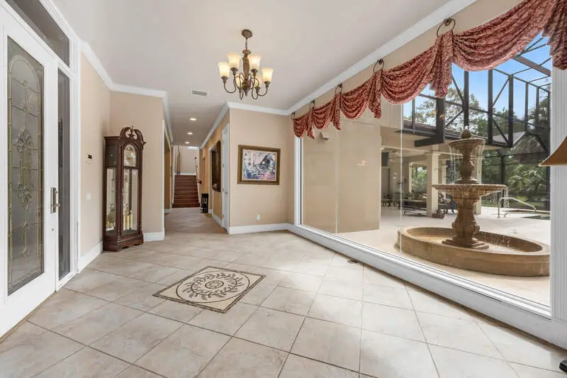 Tucked behind private gates on a rare 5-acre parcel, this peaceful estate offers the space and freedom to enjoy everyday living with room to breathe. Designed for comfort and connection, the home opens up to a large screened lanai with an outdoor kitchen, pool, and plenty of spots to relax or entertain-whether you're hosting friends for dinner or just enjoying the quiet sounds of nature. Inside, the layout is thoughtful and spacious. Each guest room includes its own private bath and walk-in closet, giving everyone personal space and comfort. The game room, complete with a wet bar, adds a casual space for gathering or watching the game. Recent upgrades include impact glass on all upstairs windows and doors, a hurricane-safe room on the lanai, new water heater (Nov 2023), newer pool heater (2021), dual 5-ton HVAC units with regular service, Wi-Fi enabled gate opener (2021), and an outdoor fire suppression system. This is a property that feels tucked away, yet still practical and ready for real life. Whether you're looking for privacy, room for hobbies, or a place to welcome family and friends, this home offers a rare opportunity to own a slice of quiet Florida living.