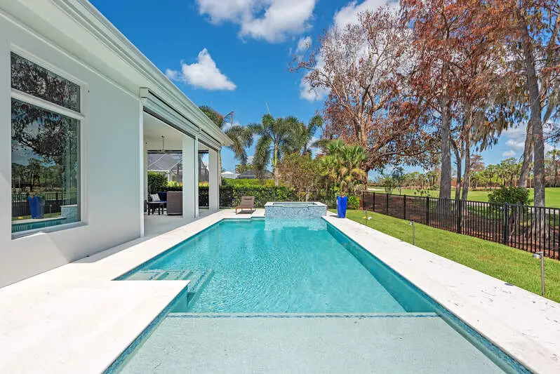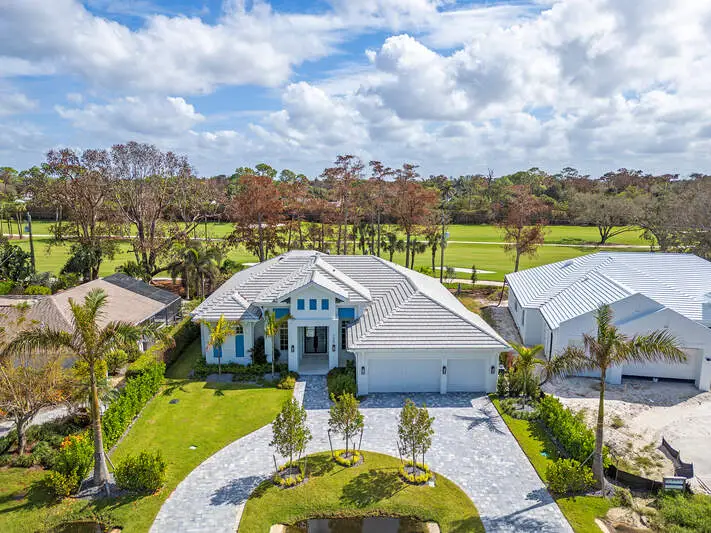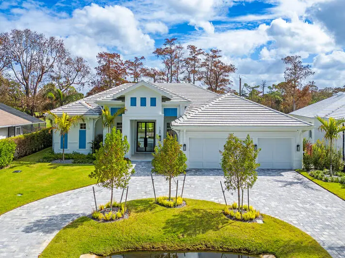 This hidden gem is centered in the heart of Naples within the coveted community of Big Cypress. It's rare to find newer construction just one mile from The Waterside Shops. Impressive ceiling heights and panoramic golf course views welcome you into this recently completed luxury home crafted by Borelli Construction. Inside you'll find the high-end finishes you expect from Borelli including custom closets, extensive trim work, detailed ceilings, as well as beautiful French white oak wood flooring and Anderson impact windows. Exquisite style abounds in this professionally decorated home that has been meticulously designed, painted and enhanced with custom window treatments and tasteful feature walls. The great-room floor plan showcases a living and dining area with beautifully coffered ceilings and luxurious window panels that frame the views onto the expansive lanai. The adjacent and well-designed kitchen is centered around a large island of natural stone. Shaker-style solid wood cabinetry and a separate pantry provide plenty of storage. Premium appliances include SubZero and Wolf, and a dual-zone wine cooler. The master suite features a spacious bedroom with sliding doors to the peaceful outdoor space. Closets are ample and the spa-like bathroom serene. The two guest bedrooms are generously sized with walk in closets and en-suite bathrooms. An additional office space, or bedroom, is located at the front of the home. The lanai is equipped with a full outdoor kitchen and plenty of room for entertaining. The heated salt-water pool and spa with sun-shelf complete the Florida lifestyle. A high-end pool enclosure with picture frame was just installed, framing the unobstructed golf course views. Custom exterior lighting, landscape improvements, a Sonos sound system, improved audio-visual equipment and garage enhancements that include built-in cabinetry, additional refrigerator and specialized flooring round out this stunning home. The community is perfectly situated in the heart of Naples with quick access to all the best in Naples beaches, shopping and dining. Social Awaiting Golf membership is available and allows for access to social activities and limited golf.