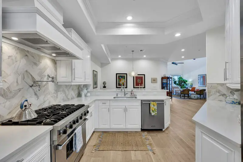 Luxurious Park Shore Townhome: With over 3,200 square feet, this stunning residence combines the ease of villa living with the privacy and space of a single-family home. Perfectly situated and recently renovated on a serene private cul-de-sac, it is just moments to the beach, as well as upscale shopping and dining. The beach, Waterside Shoppes, Venetian Village, and Artis-Naples are moments away, as well as Seagate Park with its tennis courts & playing fields. Upon entry, the elegant foyer sets the tone for a home filled with refined details and exceptional craftsmanship. The open floor plan flows seamlessly through living spaces adorned with volume tray ceilings, crown molding, solid wood doors, fresh paint, and newly installed Legno Bastone Italian wide plank wood floors throughout the home. The great room boasts 25' ceilings and expansive windows filling every corner of this home with natural light. The triple sliding impact glass doors open to a spacious, lush and private lanai, featuring a sparkling heated pool and spa, a new privacy fence, landscaping & night lighting, perfect for relaxation or entertaining. The newly renovated gourmet kitchen is a chef's dream, featuring solid wood cabinetry, white quartz countertops with a marble backsplash, and a full suite of Viking appliances, including a 6-burner gas range with a pot filler, a wall oven, convection microwave, and built-in refrigerator. In addition to a formal dining room, this level has a spacious office perfect for the remote worker. This main floor also includes the luxurious primary suite with newly installed closet organizers and a sumptuous bathroom retreat with a separate soaking tub, his/her vanities and large shower. A private elevator provides convenient access to the spacious second level with soaring tray ceilings. Here, you'll find a media room, family room or second office complete with new built-in bookshelves and cabinets, a wet bar and wine cooler. Two guest bedrooms with renovated en-suite bathrooms allow privacy and comfort for family and friends. There is plenty of storage throughout the home, but this level has an extra-large storage closet plumbed for secondary laundry machines for added convenience. Lusso Villas has a condo association with strong reserves which is allowing them to lower their quarterly fees for 2025. These fees cover gas, water, sewer, lawn maintenance, irrigation, interior and exterior pest service, roof maintenance, exterior window washing, exterior painting, pavers, insurance, management, & reserves. This beautiful home embodies a harmonious blend of refined elegance, thoughtful design, and an unparalleled location. Discover the pinnacle of luxury living.