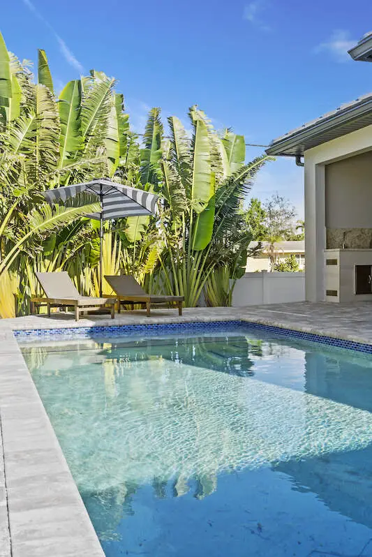 Minutes to Vanderbilt Beach and the Ritz Carlton, welcome to 799 108th Ave N, a stunning home in the highly sought-after Naples Park, ideal for full-time living, a vacation retreat, or a lucrative investment property like Airbnb. This 4-bedroom, 3-bathroom pool home offers a fantastic combination of luxury and convenience. Professionally furnished, this modern gem features an open-concept floor plan with high ceilings, crown molding, and a sleek tile roof. The gourmet kitchen boasts 42" white wood cabinets, a large dine-at island with Quartz countertops, stainless steel appliances, and a hooded range that flows seamlessly into the spacious living area with coffered tray ceilings and large paneled sliding doors. Step outside to enjoy the expansive lanai, complete with an outdoor kitchen and built-in BBQ, perfect for entertaining. The private, fenced-in pool adds a touch of relaxation. The primary suite is a true retreat, with a walk-in shower, freestanding soaking tub, dual vanity, and a generous walk-in closet with an organizing system. Just 5 minutes from Naples' stunning beaches, Mercato shopping and dining, and the newly updated Pavilion shopping center, you can easily drive, walk, or bike to all the best local attractions. Don't miss the opportunity to own this incredible property in one of Naples' most desirable neighborhoods!