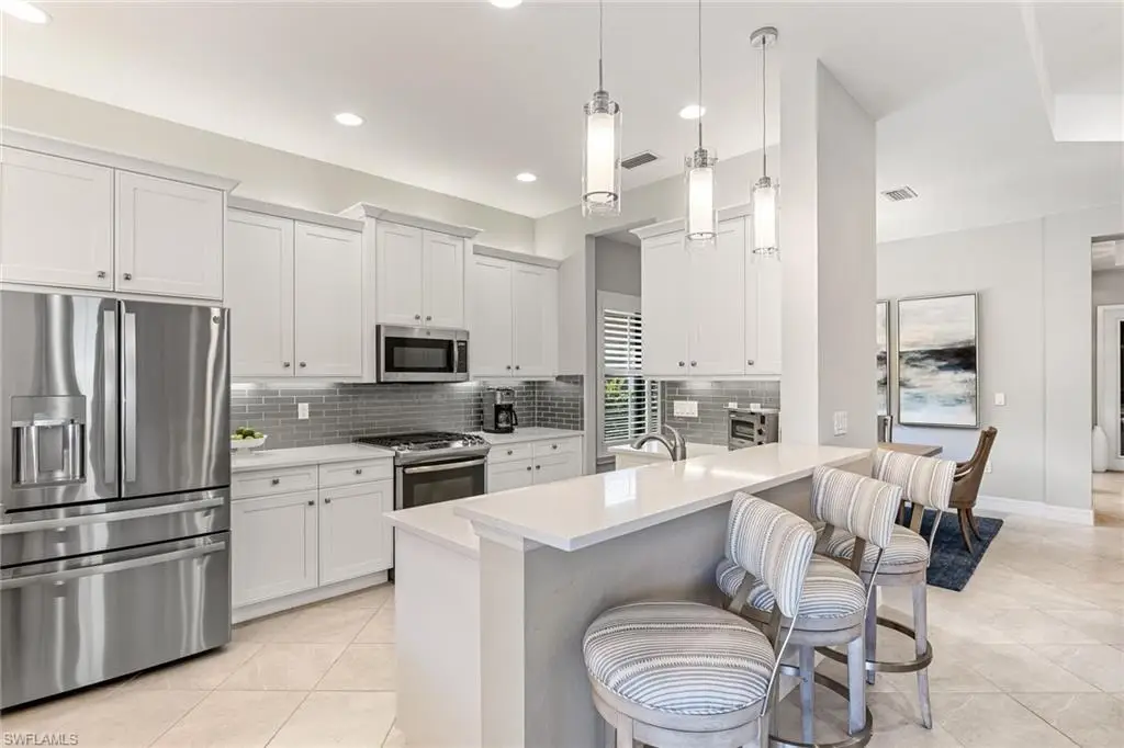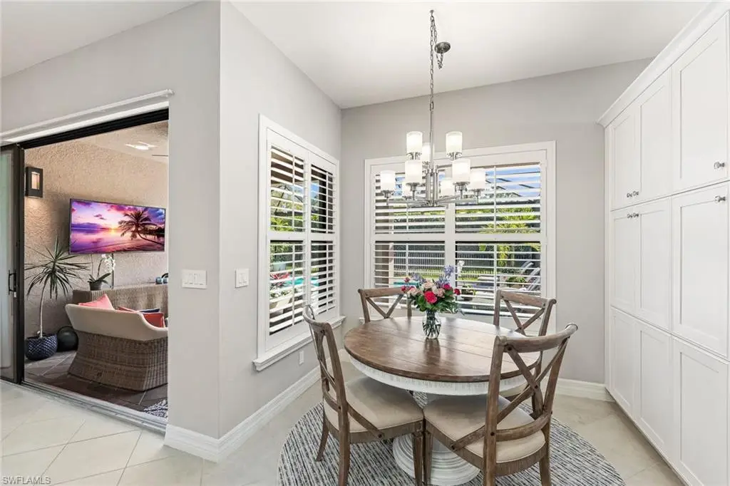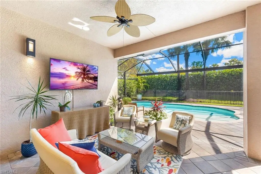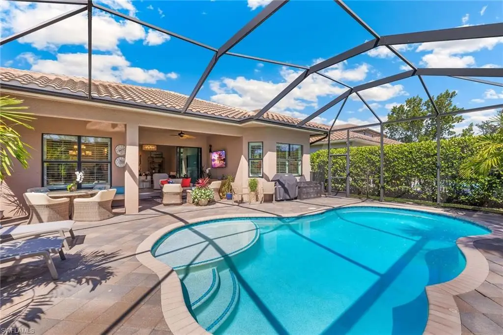 Welcome to your MOVE-IN ready dream home, nestled in the highly sought-after community of Stonecreek. This stunning residence offers a perfect blend of luxury, comfort, and modern living, offered TURNKEY and ready for immediate enjoyment. Professionally decorated, this home boasts 3 bedrooms, den, 3 bathrooms, and 3-car garage with epoxy flooring, providing ample space and comfort for family and guests. The heart of the home features a chef-inspired kitchen complete with upgraded stainless-steel appliances, quartz countertops, and generous counter space, perfect for entertaining. Enjoy an open-concept living area that flows seamlessly. Step outside to your private backyard retreat, where you can relax by the pool featuring a panoramic screen cage, host barbecues, or simply enjoy the serene environment. The fenced yard offers perfect additional outdoor space. Throughout this beautiful home are abundant embellishments, including a FULL-HOUSE GENERATOR, plantation shutters, designer lighting, upgraded landscaping, and much more. Located in the coveted NATURAL GAS community of Stonecreek, residents enjoy access to top-notch amenities, including a clubhouse, fitness center, 5 tennis courts, 4 pickleball courts and a full-time activities director to keep the fun going year-round for all ages. The reasonable HOA fees include lawn care, for more time to relax. The community offers convenience to shopping, dining, and entertainment, and a top-rated school zone.