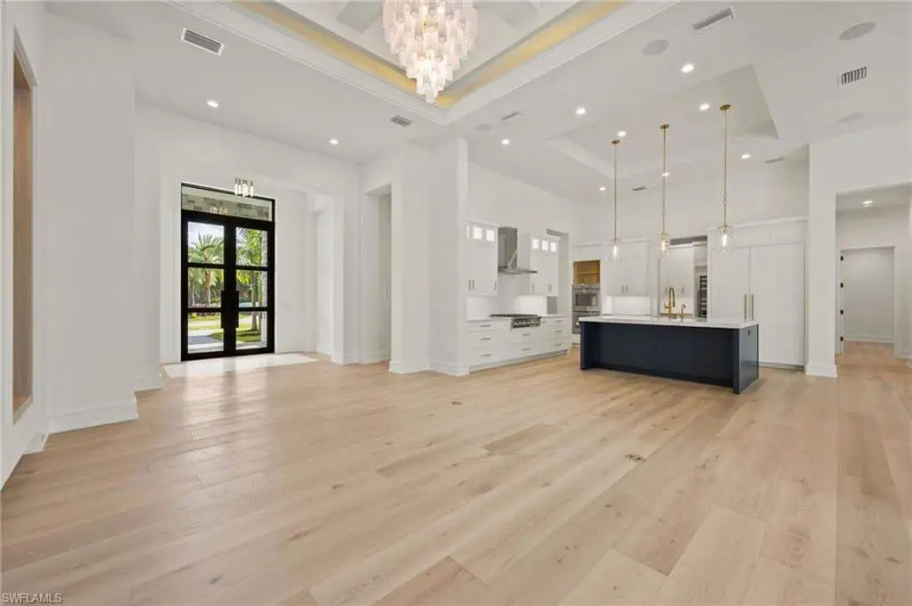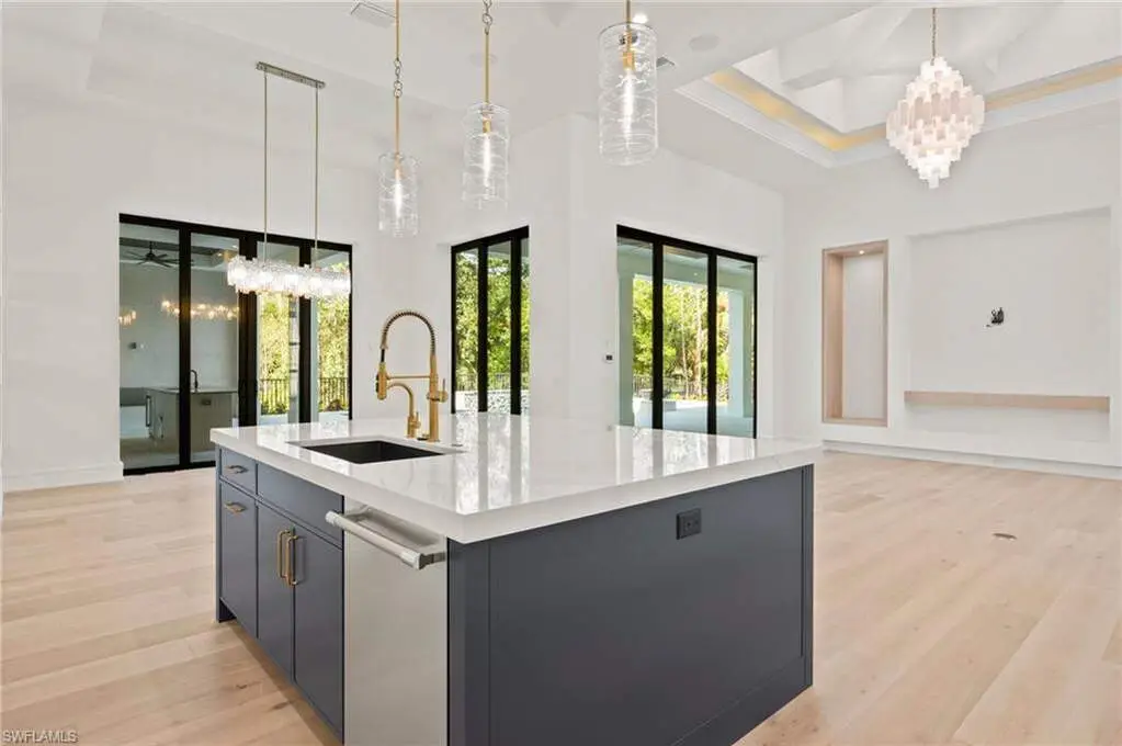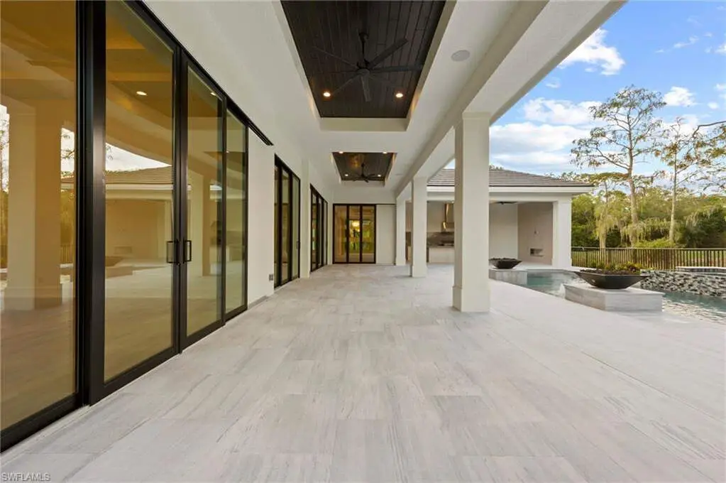TRANSFERABLE GOLF MEMBERSHIP AVAILABLE! Skip the golf wait list and enjoy an immediate golf membership with only a transfer fee. Be the first to live in this New Construction home built by "Florida Lifestyle" and enjoy privacy at the end of a cul de sac while still having a golf course view. The split floor plan features four en suite bedrooms and the zen-like primary suite offers large custom walk-in closets and a spa-style bath with large soaking tub, custom walk-in shower with multiple shower heads, dual vanities, and two separate water closets. The adjacent study is anchored by a custom shiplap wall and provides access to the lanai while the open concept of the main area of the house flows from the gathering room with coffered ceilings and custom lighting, into both the kitchen and dining room. An elegant, mirrored wall in the dining area is a perfect aesthetic and the gourmet kitchen makes entertaining a snap with dual ovens, Thermador appliances, and an ample breakfast bar. Expanding the kitchen's efficiency is a magnificent butler's pantry fully equipped with a second dishwasher, sink, microwave, wine refrigerator, a large walk-in pantry, and plenty of storage. Hurricane-rated sliding doors open to a spacious covered lanai featuring an outdoor kitchen and fireplace. Relax beside the gorgeous pool, lounge on the sun shelf, soak in the spa, and enjoy the tranquil water and fire features. Amenity-rich Quail West, a hidden gem in North Naples, holds the exclusive Platinum Club status which is the pinnacle of recognition for Private Clubs around the world recognizing the top 1% globally. The world-class amenities include two championship golf courses, elegant clubhouse with a variety of dining options, a racquet sports complex, bocce courts, state-of-the-art fitness center, full-service salon/spa and unending activities for every interest.