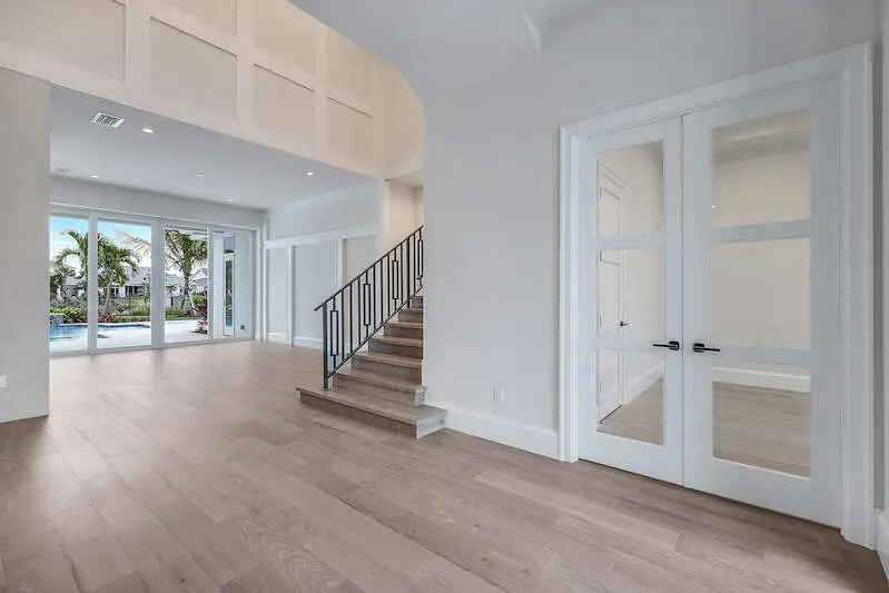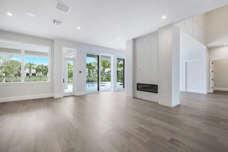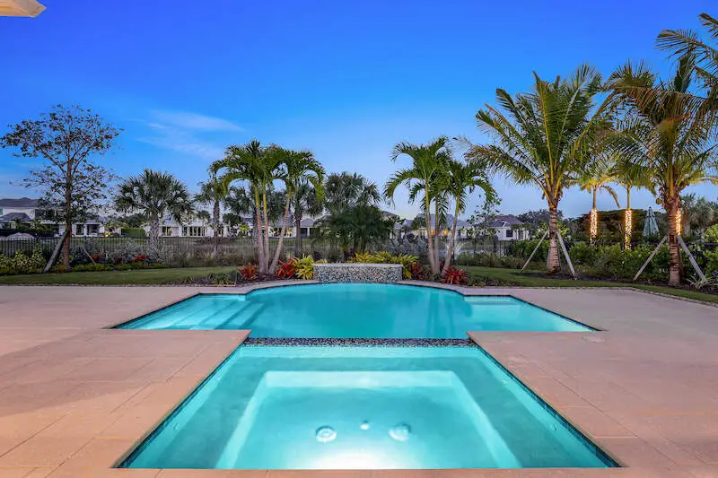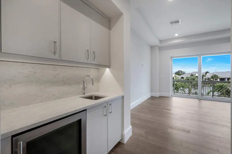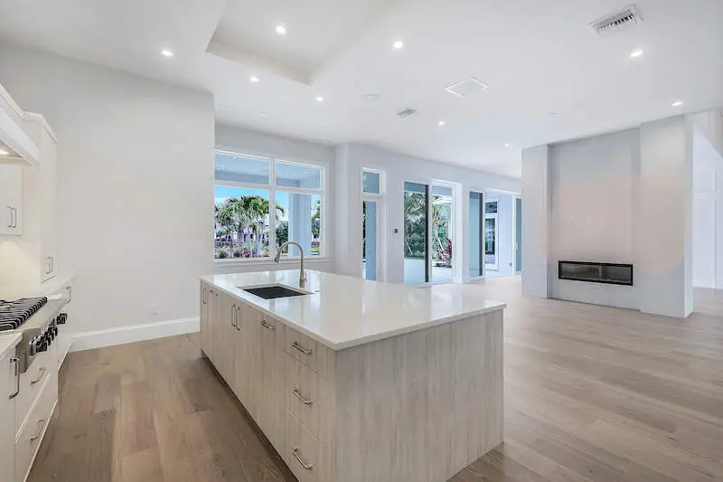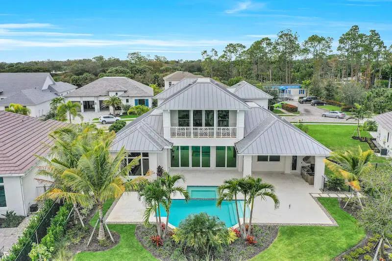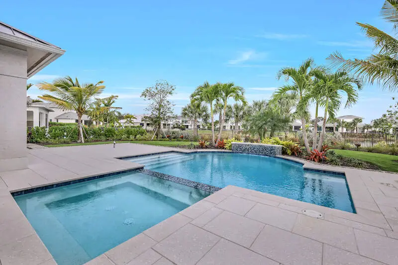 New construction, completed November 2023. The oasis is a four bedroom, den, and loft home with four bathrooms plus two half-baths. Built by Distinctive Communities in the gated North Naples community of The Enclave of Distinction. A private boutique neighborhood of 27 homes, the Oasis is situated on a beautiful SE homesite with a water view. This 4,869 square foot home boasts views as soon as you walk through the front door, through the living room, to the resort-style pool with an outdoor cook center and fire pit. The gourmet-inspired kitchen features Viking appliances, custom wood cabinetry, and Pompeii quartz countertops. It flows into the family room, accented with a gas fireplace. The main suite on the first floor features volume ceilings, a private sitting area, a luxurious bathroom with a freestanding soaking tub, a walk-in shower, dual vanities, and two oversized walk-in closets. Also located on the first floor is a den, en-suite guest bedroom, formal dining room, and butlers pantry. The second floor includes two on-suite guest rooms and a lounge/media room with an open balcony—minutes to shopping, gulf beaches, Mercato, SW FL International Airport, and fine dining.