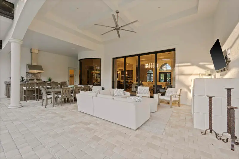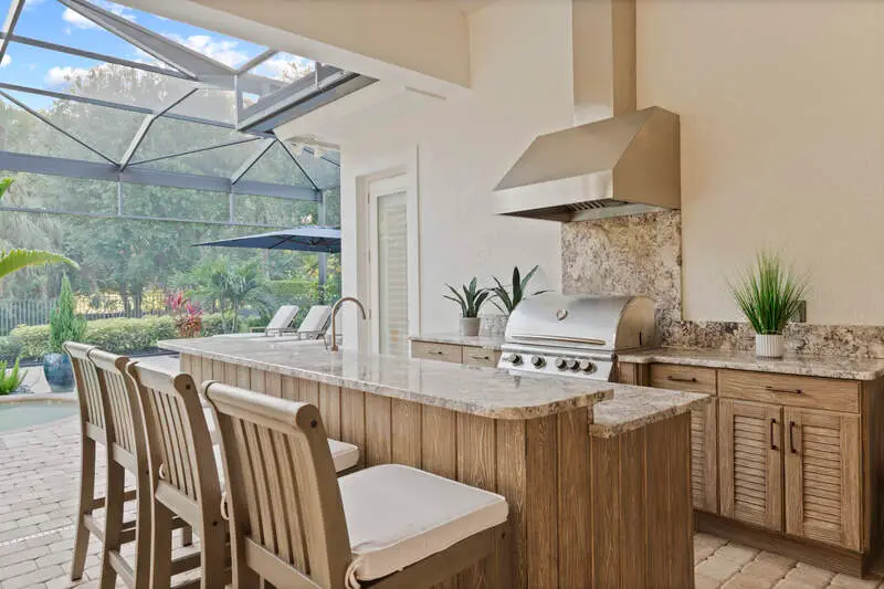 Experience the perfect blend of comfort and style in this newer yet freshly upgraded home thoughtfully inspired by Cardamom Design. Offering the most sought after southwest exposure, the screened lanai features various areas for relaxing, a full outdoor kitchen, built-in fireplace and inviting fire pit plus all-day sun and magnificent evening sunsets. The indoor/outdoor flow delights with a bright, open floor plan and premium finishes end to end- including a gourmet kitchen with upgraded appliances, newer countertops, custom cabinetry and wrap-around island for easy entertaining, a soaring great room with built-in tv wall and wine cooler and clever architectural touches throughout. The primary suite is a private oasis with a spa-like bath and generous walk-in closets while the overall floor plan flawlessly functions to allow privacy for owners and visitors alike. Dine al fresco or step inside to a separate dining room with built-ins or a casual breakfast area. Recently painted inside and out with many upgrades such as an air-conditioned 3-car garage with new built-in storage, Sonos sound system, custom closets and whole house generator, this home captivates at every turn.