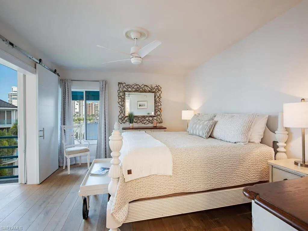 Park Shore Landings is one of the most sought-after low-density bay-front communities in Naples, ideally positioned along the serene waters of Venetian Bay and just a short stroll to the shops and dining found at Venetian Village. Known for its intimate setting, manicured grounds, and private beach access, the community offers a relaxed yet upscale coastal lifestyle in the heart of Park Shore. The unit offered is a rarely available top-floor, end-unit showcasing unobstructed western views across the bay, where evening skies and water reflections create a quiet, dramatic backdrop. The open-concept floor plan connects the kitchen, dining, office nook, and living areas, with natural light pouring in from multiple exposures, while the two bedrooms and two bathrooms are quietly secluded. Additional notable enchancements include rich wood floors throughout, a modernized kitchen with stainless steel appliances and precoius-stone countertops, as well as custom lighting-offering both style and comfort in every detail. Park Shore Landings features a bay-front pool and spa, private guest suite, grilling areas, available boat docks, and a resident clubhouse. Owners also enjoy private beach access through the Park Shore Association. This is a prime opportunity to own in one of Park Shore's most desirable bay-front enclaves, just minutes from Gulf beaches, Waterside Shops, the upcoming Four Seasons Naples Beach Club, and downtown Naples.