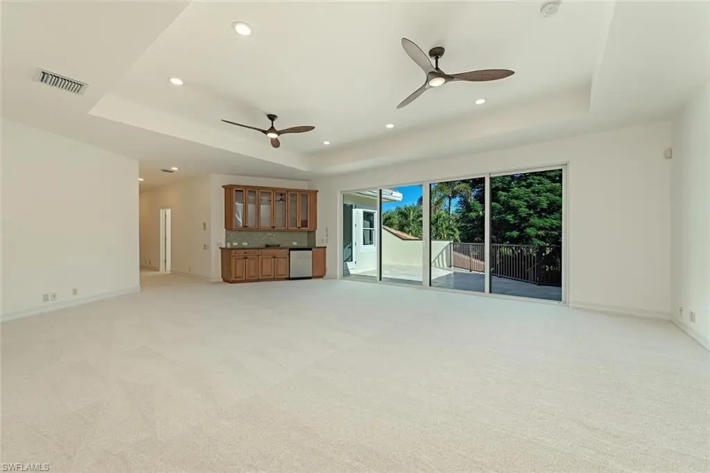 • Cove lighting, crown molding, coffered ceiling details, solid core doors