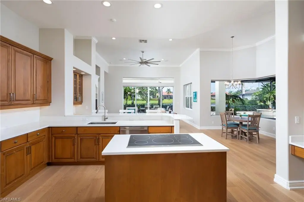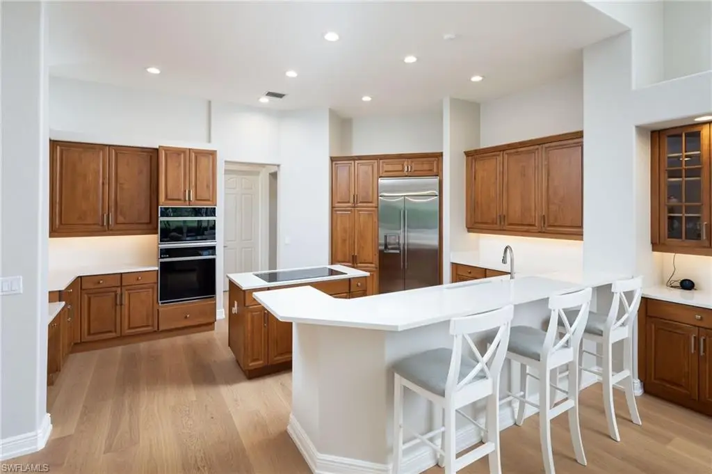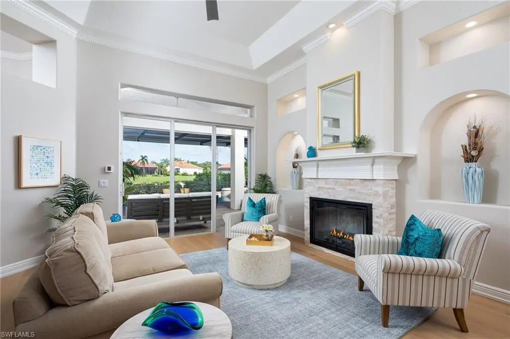 Step into an exceptional expression of luxury living within one of North NaplesÆ most sought-after country club communities. This meticulously renovated estate spans over 3,700 square feet of thoughtfully designed interiors, blending timeless architecture with the convenience of modern technology. Every element has been curated with precision between 2021 and 2025. The home showcases reimagined indoor and outdoor kitchens with premium appliances, quartz and granite finishes, and under-cabinet lighting. Flooring transitions seamlessly from rich hardwood in living areas to soft carpeting in bedrooms and elegant tile in baths. All bathrooms have been retiled with updated sinks, fixtures, and His-and-Her primary suites. Enhanced lighting, plantation shutters, and a custom entertainment center elevate everyday living. Impact-resistant windows and doors, wind-rated garage systems, new HVAC, water heaters, and roof with gutters ensure peace of mind. Smart-phone integration allows effortless control of appliances, HVAC, pool, security, and storm shadesùunderscoring a lifestyle defined by both sophistication and ease. The screened lanai frames a resort-style pool and spa with new enclosure and equipment, offering a serene backdrop of lake views and dramatic sunsets. Beyond the residence, The Vineyards delivers an unmatched resort lifestyle. Homeowners enjoy the security of gated privacy and the natural beauty of manicured lakes, lush landscaping, and winding paths. Steps away, the communityÆs country club presents championship golf, tennis, pickleball, a state-of-the-art fitness center, resort pools, and vibrant social programming. Nearby, NaplesÆ world-class beaches, dining, theaters, and upscale shopping complete the experience. A rare opportunity to own a property where every detail has been consideredùthis home represents the perfect balance of luxury, lifestyle, and lasting value.