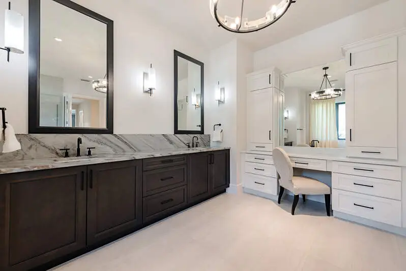 This spectacular resale, that is 5 years young, is a MUST SEE!!! Welcome to 16775 Cabreo Drive in Mediterra. This gorgeous London Bay built "Devonshire Model" with separate guest casita/guest house is one of a kind. Perfectly situated on this western exposure lot with a 3 car attached garage this home has gorgeous curb appeal. Come through the covered front porch, with double door entry, to this amazing open concept floor plan with soaring ceilings and walls of windows allowing all the Florida sunshine to stream in! Wood-look tiled plank flooring throughout the main living areas of the home, custom detailing, and crown molding are just some of the high end finishes you are sure to be looking for! The designer kitchen is perfect with white shaker cabinets on the perimeter and darker cabinets on the oversized island. The tiled backsplash, quartz countertops, high end stainless appliance package, recessed and pendant lighting, and plenty of counter space make this kitchen a Chef's dream. The dining area, adjacent to the kitchen and great room plus outdoor dining and seating make this home a fabulous place to entertain with plenty of seating for everyone. The oversized great room, with TV wall, custom millwork and accents, tray ceiling and large oversized sliders, opens to the lanai. A spacious owner's retreat provides the perfect place to rest peacefully. Two walk-in closets, a large walk-in shower, soaker tub and oversized dual vanities complete the en-suite space. The den is tucked away from the great room to allow for quiet privacy when needed. There are 2 additional guest suites in the main house both with double closets and en-suite baths. The split bedroom floor plan allows for privacy for you and your guests. A separate one bedroom/studio Casita /guest house with en-suite bath and private access can be used for guests or office space - you decide! Outside, under the covered lanai enjoy the western sunset views, a fully equipped outdoor kitchen with refrigerator, sink and built-in grill. A glistening pool and spa await you for relaxing in the Florida sunshine. Fully screened lanai cage and expanded decking provide the perfect spot to watch the sun set and relax after a day of sun-filled activities. Lake views from the lanai and great room and landscaped area at the front of the home, with no other homes across the street, provide the upmost of privacy. A whole home generator, Natural gas community, flat tiled roof, storm protection give you the best in storm protection. Mediterra's world-class amenities include: a Private Beach Club, Tennis, Pickleball, Wellness Center, and two Tom Fazio-designed golf courses! This home offers the perfect blend of luxury, style, and functionality. Mediterra is centrally located minutes from down town Naples and Bonita Springs with fine dining and shopping galore. RSW Airport is a 25 minute drive! Is this the home for you? We invite you to come see for yourself!!