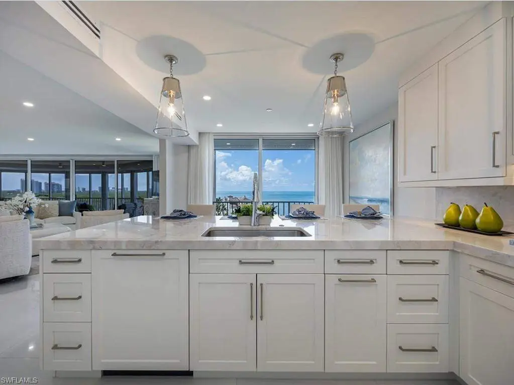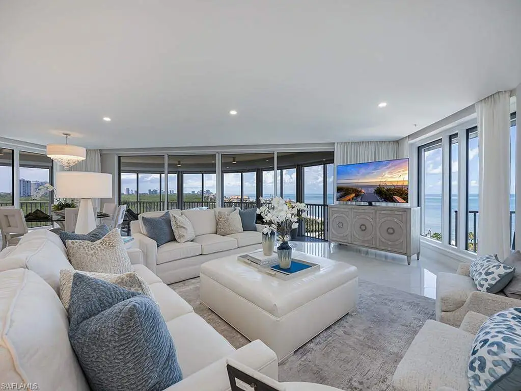 Seldom does a beachfront unit in Bay Colony undergo such a thorough transformation, especially one available to the public in such a short time frame. This residence has been carefully reimagined, from the sleek white glossy large-format porcelain tile and a stunning array of quality surfaces throughout this space. The stylish, beach-inspired, sophisticated furniture package makes this opportunity genuinely hassle-free. The next fortunate resident will experience the ultimate lifestyle-whether unwinding by the pool, relaxing on the beach, playing tennis, or enjoying fine dining across Naples-without the hassle of coordinating with contractors or dealing with unforeseen budget increases often accompanying significant renovations. Begin your next adventure by enjoying breathtaking, unobstructed views of the Gulf of America, with the shimmering lights of Park Shore twinkling in the distance at dusk.