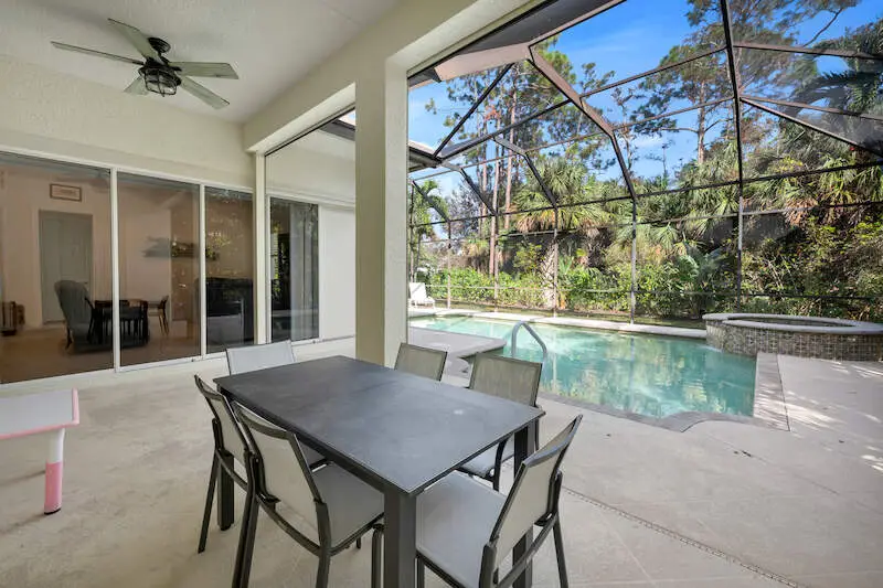 RARELY AVAILABLE 4 bed plus Den, 3 car garage home west of 75! Nestled in fabulous Horse Creek Estates, an enclave of 109 homes with low fees. Set on an oversized corner lot overlooking a 13-acre conservation preserve. The open floor plan, with soaring ceilings, large living/dining room and family room, has lots of space for family and guests. The open concept kitchen has a center island, breakfast bar, new stainless appliances and pantry. The large primary suite has two walk-in closets, bath with separate tub and shower, and dual vanities. The three guest bedrooms are thoughtfully designed for privacy. The office has new built ins. The screened lanai has a new hurricane screen so you never have to move your furniture, and the pool and spa have been converted to salt water for healthier living. Other recent upgrades include: new landscaping, plantation shutters, interior paint, hot water heater and whole house surge protection and generator with a buried 500 gallon propane tank. The oversized 3 car garage has storage racks and shelving. This home is a true gem in North Naples with A rated schools and close proximity to beaches, shopping and restaurants. No hurricane damage.