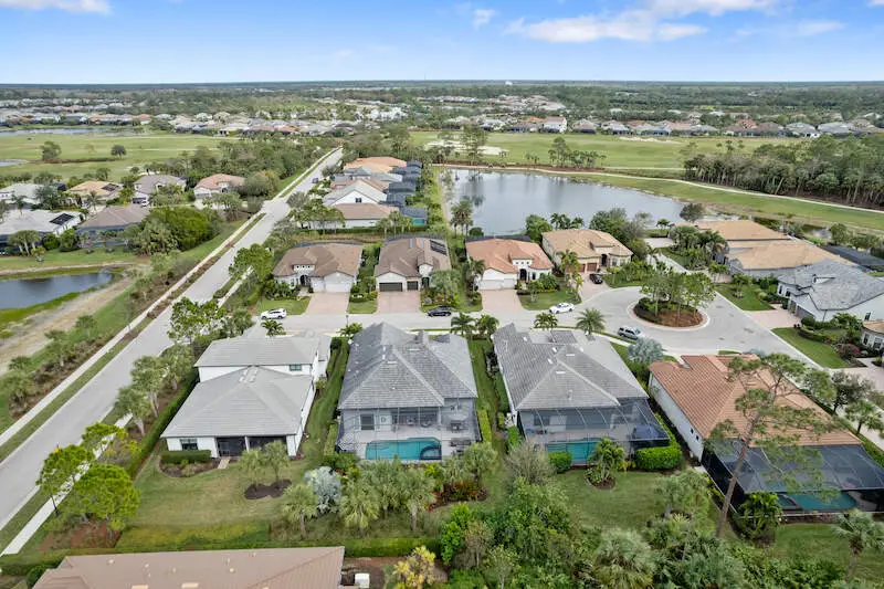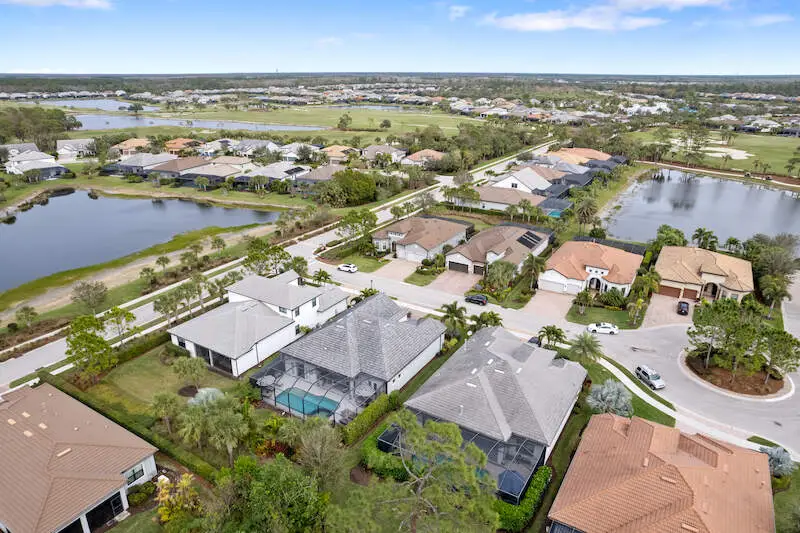 Discover a lifestyle of unparalleled luxury and leisure in the prestigious Greyhawk community. The most desired and meticulously enhanced Pinnacle model, offering 3 bedrooms + den and a 3-car garage, redefines elegance with its flawless design and sophisticated charm. Designer-style furniture and decor are also available, making it effortlessly move-in ready. Enjoy the rare opportunity of IMMEDIATE GOLF membership-bypass the waitlist and immerse yourself in the world of world-class golf, a privilege rarely found in today's market. As you walk through the grand entrance, framed by vibrant bougainvillea and flowering plants, you'll feel the warmth of a space and tons of natural light. The living room, with its coffered ceilings lined in real wood wallpaper, sets the tone for a home that's equal parts stylish and inviting. Sunlight streams through added French doors in the kitchen and master bedroom, creating a seamless connection to the outdoors. In the kitchen, the details are a chef's dream: upgraded kitchen cabinetry with above lighted glass cabinets, a custom pantry, wine fridge, electric hot water dispenser that ensures your morning coffee or evening tea is always within reach. Every space has been thoughtfully enhanced, from the illuminated mirrors and upgraded lighting to the custom-built closets that keep everything perfectly in place. This home features sleek tile flooring in all areas, and luxurious wood flooring adds warmth and elegance to the master suite. Step outside, and your private oasis unfolds. Nestled on a secluded lot, the home is surrounded by lush landscaping that transforms the space into a serene retreat. As evening falls, custom outdoor lighting casts a warm glow, creating an enchanting atmosphere perfect for relaxing or entertaining under the stars. Entire lanai deck pavers have been removed and replaced by non-slip ceramic tiles. Picture evenings by the saltwater pool and spa, renovated with elegant tile, and controlled effortlessly by a phone app. Cooking in your fully equipped outdoor kitchen, featuring a FireMagic grill, is a true delight. The upgrades continue with features designed for effortless living: hurricane impact doors and windows, lanai hurricane electric roll-down screens for added safety, a Generac natural gas-fed generator, the air-conditioned and insulated garage, complete with electric storage racks and pull-down attic access, that is as functional as it is impressive. And the list goes on! This is your opportunity to not just own a home but to embrace an extraordinary lifestyle. Schedule your private showing today, and let your story begin here.