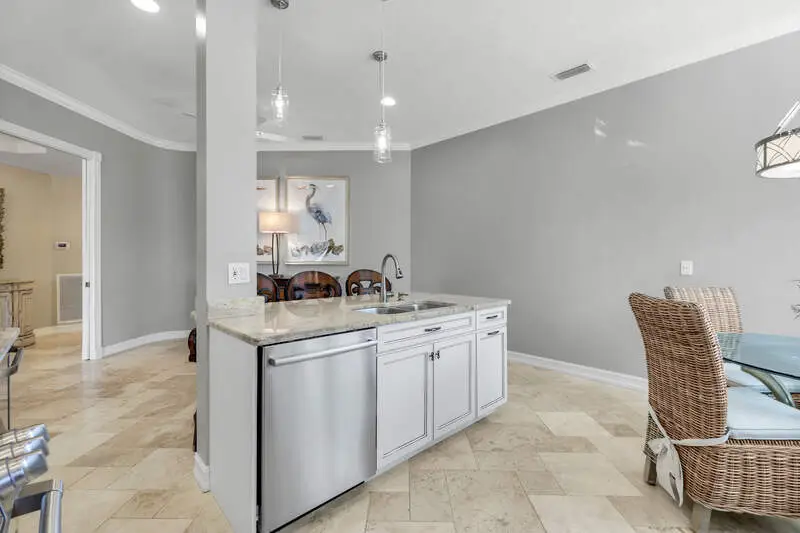 Welcome to our wonderfully appointed and spacious second floor "Versailles" floor plan in highly desirable Les Chateaux. Some of the many features of the 3 bedroom, 2 bathroom residence include travertine tile throughout the main living areas, rich wood flooring in the bedrooms and living room, and brand-new washer and dryer. Beautifully updated kitchen offers new appliances, soft close / pull out cabinets, granite counters and stylish mosaic backsplash. Modernized bathrooms with marble counters and shower in Master and granite in second. Plantation shutters add timeless charm while custom closets provide smart and stylish storage solutions. Enjoy comfortable evenings on the private screened lanai nestled amongst mature landscaping. Your convenient, private 2 car garage has epoxy flooring and a flexible Inspired wall storage system. Les Chateaux offers its residents their own community room with swimming pool, spa and lounging area. Pelican Marsh is a splendid, amenity rich North Naples country club community and is conveniently located to the best in shopping, dining and beaches.