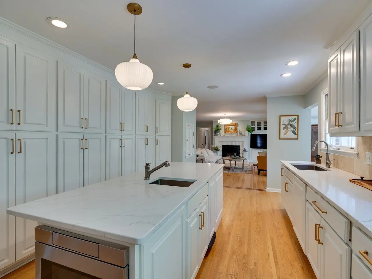 The gourmet kitchen is designed for both beauty and function, featuring marble finishes, a professional 8-burner double oven gas range with griddle, and an oversized island--perfect for cooking, gathering, and entertaining. Two main-level primary suites, thoughtfully positioned at opposite ends of the home, ensure comfort and privacy for everyone.