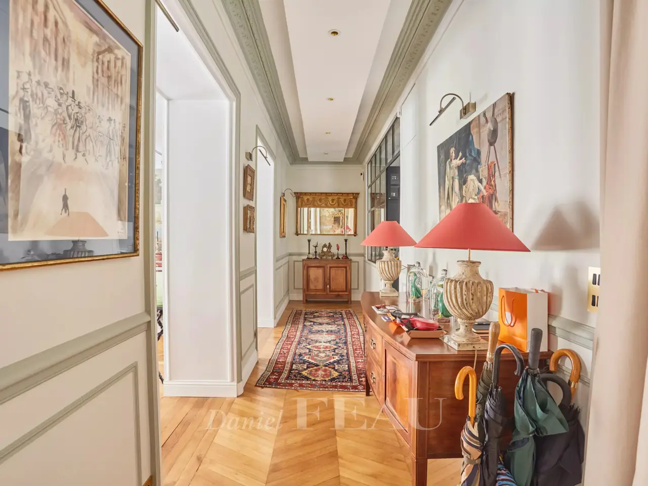 This superb apartment on the 1st floor of a fine Haussmannian building offers 181 sqm of living space which has been renovated throughout by an interior decorator. Featuring parquet flooring, mouldings and a fireplace, it includes an entrance hall, a 70 sqm triple living/reception room, a spacious kitchen with dining facilities, a suite with a study, a bathroom and a dressing room, a guest bedroom with a bathroom, and two wc. With two maid’s bedrooms (13.01 and 8.51 sqm of living space as defined by the Carrez Law) and two cellars. Air conditioning.