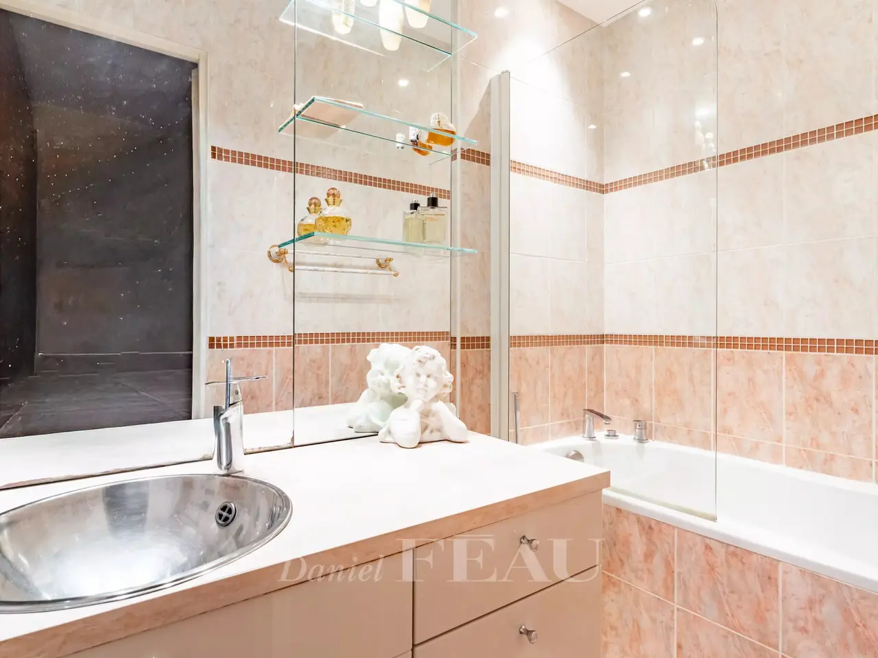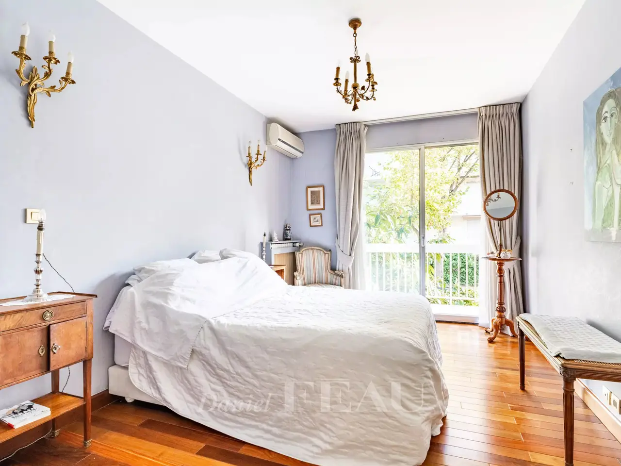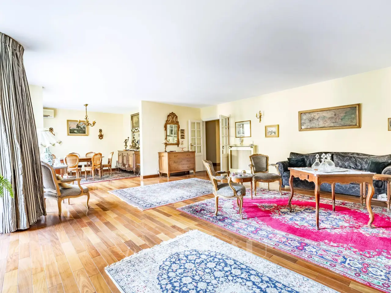 Saussaye neighbourhood. This bright and peaceful family apartment is in a luxurious residence in the immediate vicinity of the shops, the schools and the transport networks. It includes a spacious double living/reception room opening onto a wide balcony overlooking the residence’s leafy gardens, a kitchen with dining facilities, three suites each with a bathroom/wc or shower room/wc, and a guest wc. The bedrooms open onto a continuous balcony. A 4th would be possible. Air conditioning. With a parking space and a cellar. A second parking space may be acquired for a further 30000€. Pasteur catchment area. An ideal family apartment on the north-western edge of the capital.