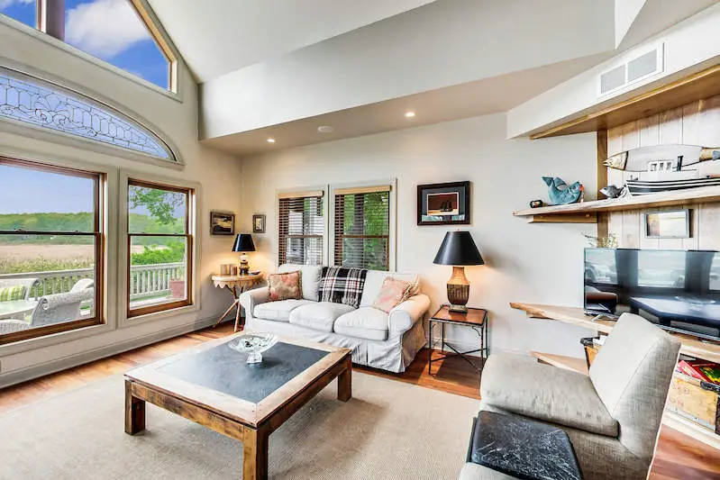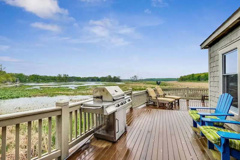''Harbor House'' a custom built home with sweeping views of the 1,000 acre Galien River Nature Preserve & the New Buffalo marina. Enjoy nature from the multiple mahogany decks & screened porch or watch sunsets over the harbor in front of the outdoor fireplace. This home offers breathtaking views from every room. Vaulted Great Room with stone fireplace, gourmet kitchen with granite counters & S/S appliances. Primary bedroom suite has Jacuzzi tub, walk-in shower & large walk-in closet. 3 additional bedrooms with ensuite baths. Mahogany floors throughout the main level. New tankless hot water heater, surround sound, security system and 2 car heated garage. Steps to your own private 45' boat slip. Just a four minute walk to the beautiful Lake Michigan beach. Great rental history with permit.