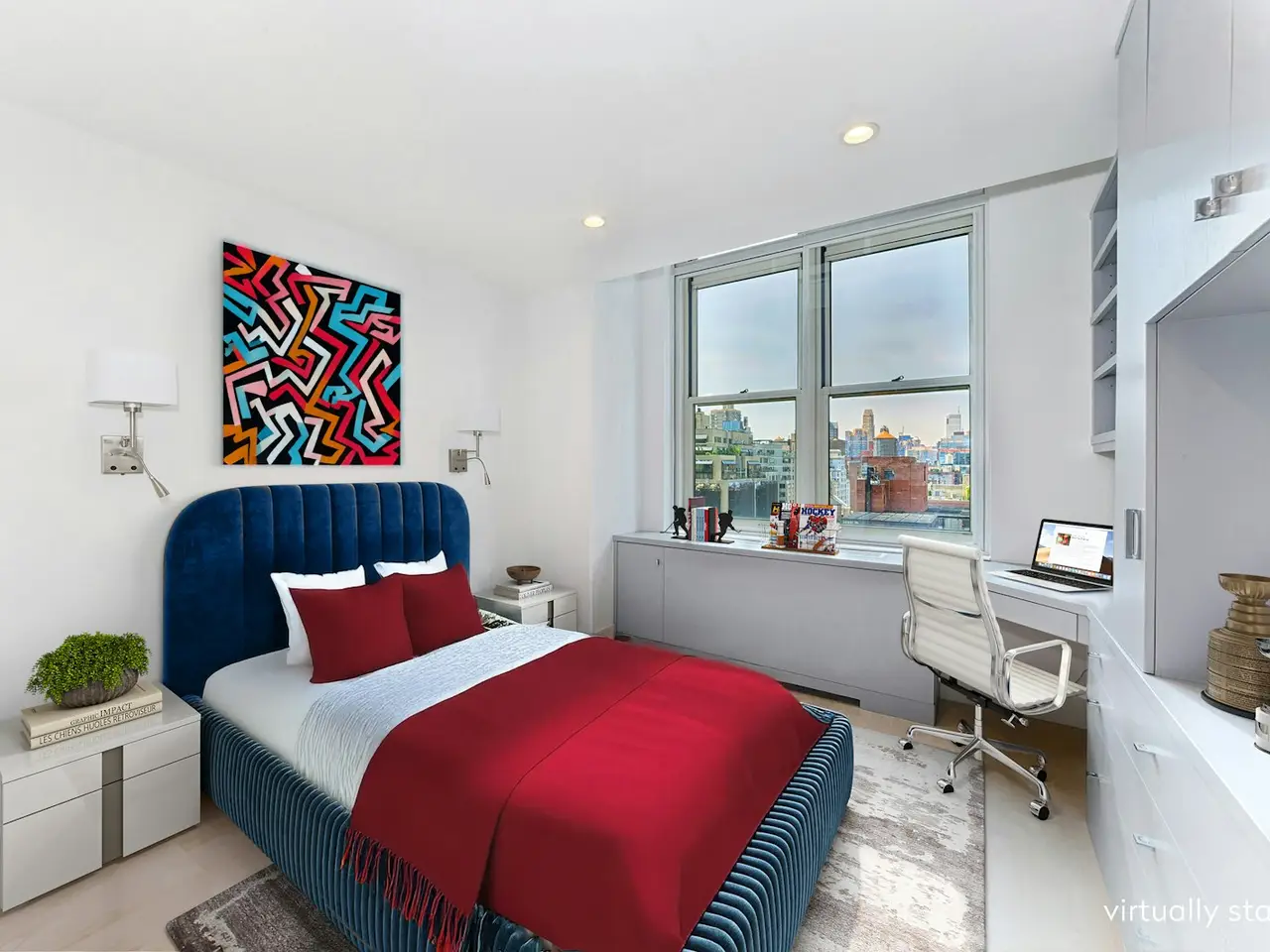 Enjoy living in this beautifully renovated 2 bedroom, 2 bath home with a great bonus loft and sunny southern views! This meticulously renovated apartment is located right off of Park Avenue and a few short blocks from Central Park. Park Avenue Court is an impressive white glove, fully staffed condominium with fabulous amenities. The apartment features soaring 14 foot ceilings throughout, beautiful white oak floors, recessed lighting, washer/dryer, endless storage space and soundproof windows with electric shades. The kitchen features all Bosch appliances including stainless steel refrigerator, 5 burner stove, dishwasher, microwave and a stainless steel Kraus deep sink. In addition, there are floor to ceiling white cabinets with Caesarstone counter-tops. The amazing back-splash is a handcrafted beautiful blue agate quartz with LED lighting. The serene primary suite has a generous walk-in closet and spa-style bathroom equipped with a Toto toilet, large shower/tub with beautiful tile and fixtures throughout. The 2nd bedroom has substantial built-ins and large closet with a renovated bathroom in hallway. A modern inspired glass enclosed oak staircase leads to the large loft space with great storage and multi-use potential. Please note that the total square footage does not include the loft space of approximately 400 sq. feet of bonus space. Residents will enjoy the convenience of a fitness room, indoor swimming pool, playroom, yoga studio, resident superintendent, courtyard, adjacent parking garage, full staff and concierge service adding a touch of luxury to everyday living. Located in the vibrant Upper East Side and in close proximity to the subway, bus, great shopping including Whole Foods and Fairway, Central Park, The Met and Guggenheim along with world class dining. Experience Upper East Side living at its finest.