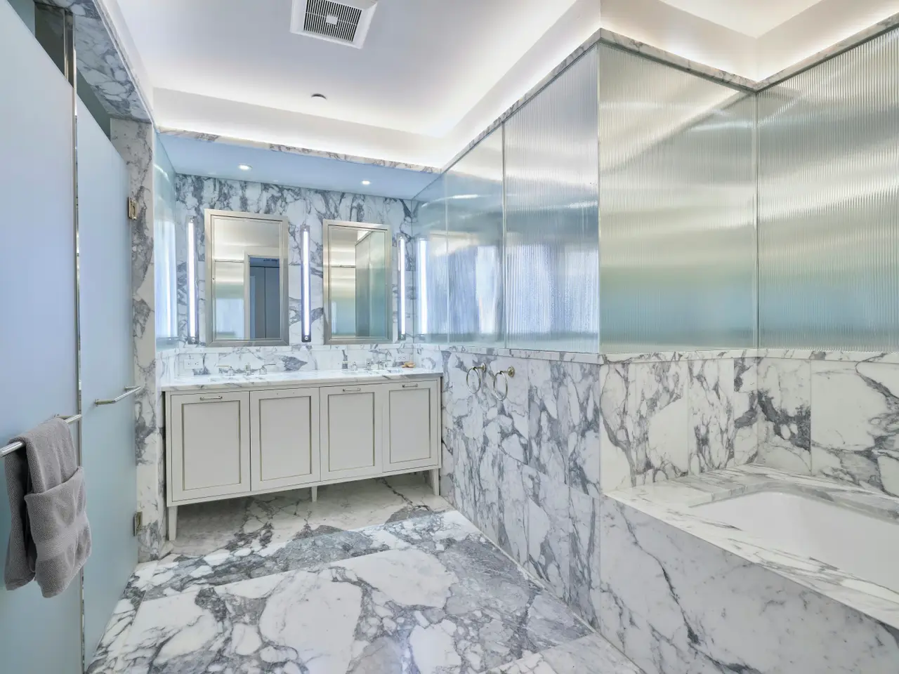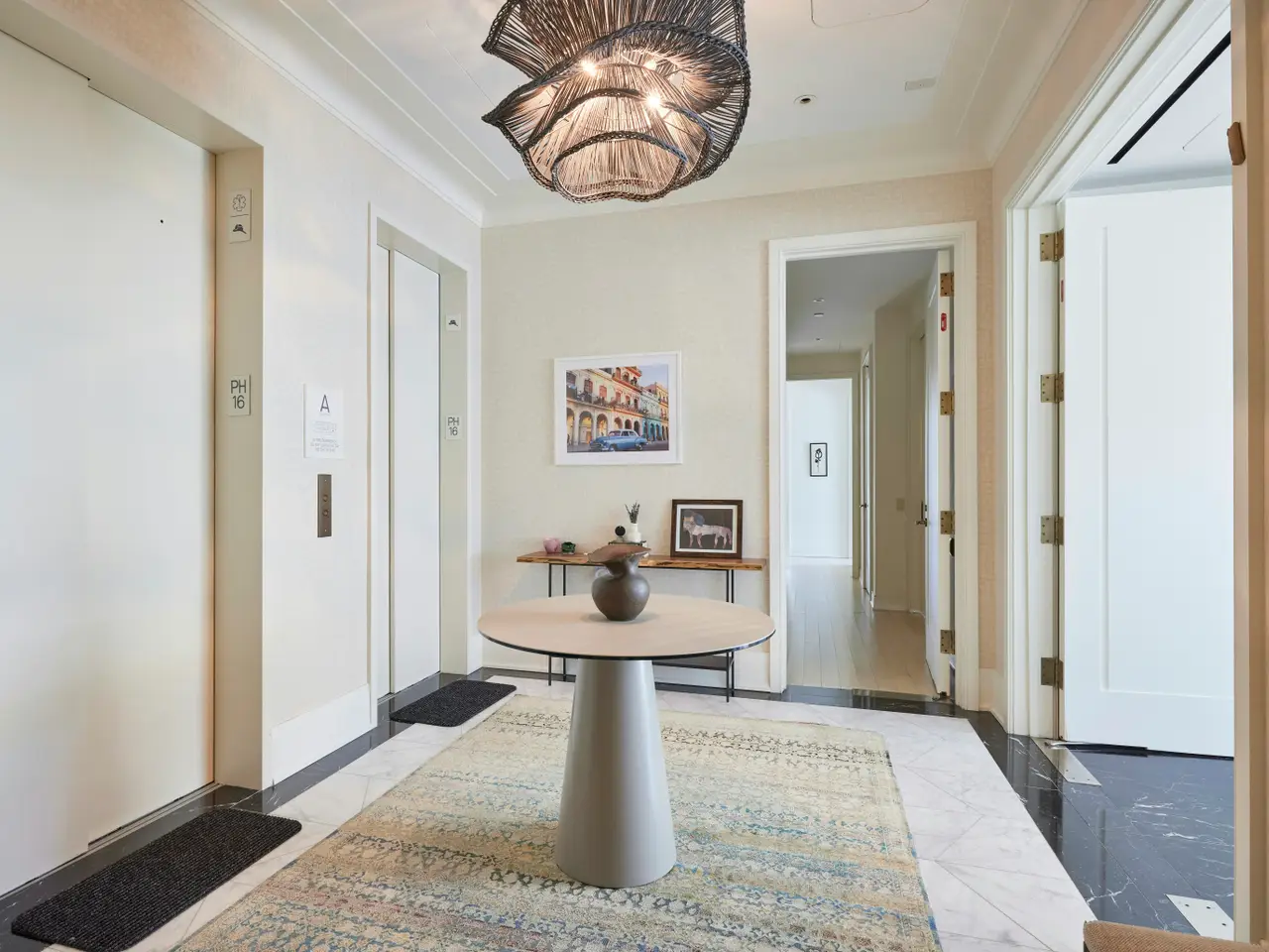 First Penthouse Resale Step into timeless elegance of Penthouse 16, an extraordinary full-floor residence meticulously crafted by the renowned Deborah Berke Partners. This grand four-bedroom, four-and-a-half-bathroom home spans approximately 3,464 square feet of thoughtfully designed interior space which features a lovely private outdoor terrace that offers sweeping city and East River views from every angle. From the moment you arrive via direct elevator access, you are greeted by 11-foot ceilings, oversized casement windows, custom moldings, 8-foot doorways, and beautiful white oak flooring-all working together to create a residence that is both sophisticated and inviting. The chef's kitchen is a stunning centerpiece, clad in high-gloss Italian lacquer cabinetry, hand-selected Arabescato Cervaiole marble slabs, and finished with a statement kitchen island-perfect for entertaining or doing homework. Woven metal mesh panels and beveled trim add architectural artistry, while Gaggenau appliances ensure culinary excellence. The primary suite is a serene sanctuary, complete with a private sitting area which could serve as a "corner" office with two exposures, large walk-in closet, and breathtaking views of the East River and Midtown skyline. The spa-like en-suite bathroom is appointed with fluted mirrored glass, a custom Italian vanity, Waterworks Henry polished nickel fixtures, a deep soaking tub, walk-in shower, and radiant heated floors for ultimate comfort. Three other bedrooms complete the home. On the first floor, a deeded storage room conveys with the apartment. Residents of 40 East End enjoy access to curated amenities that elevate everyday living. Highlights include the Parlor Lounge with soaring ceilings, sculptural staircase, and wet bar; a refined Library for remote work; a lively Game Room with foosball, billiards, and more; a Gourmet Catering Kitchen for entertaining; and a state-of-the-art Fitness Center.