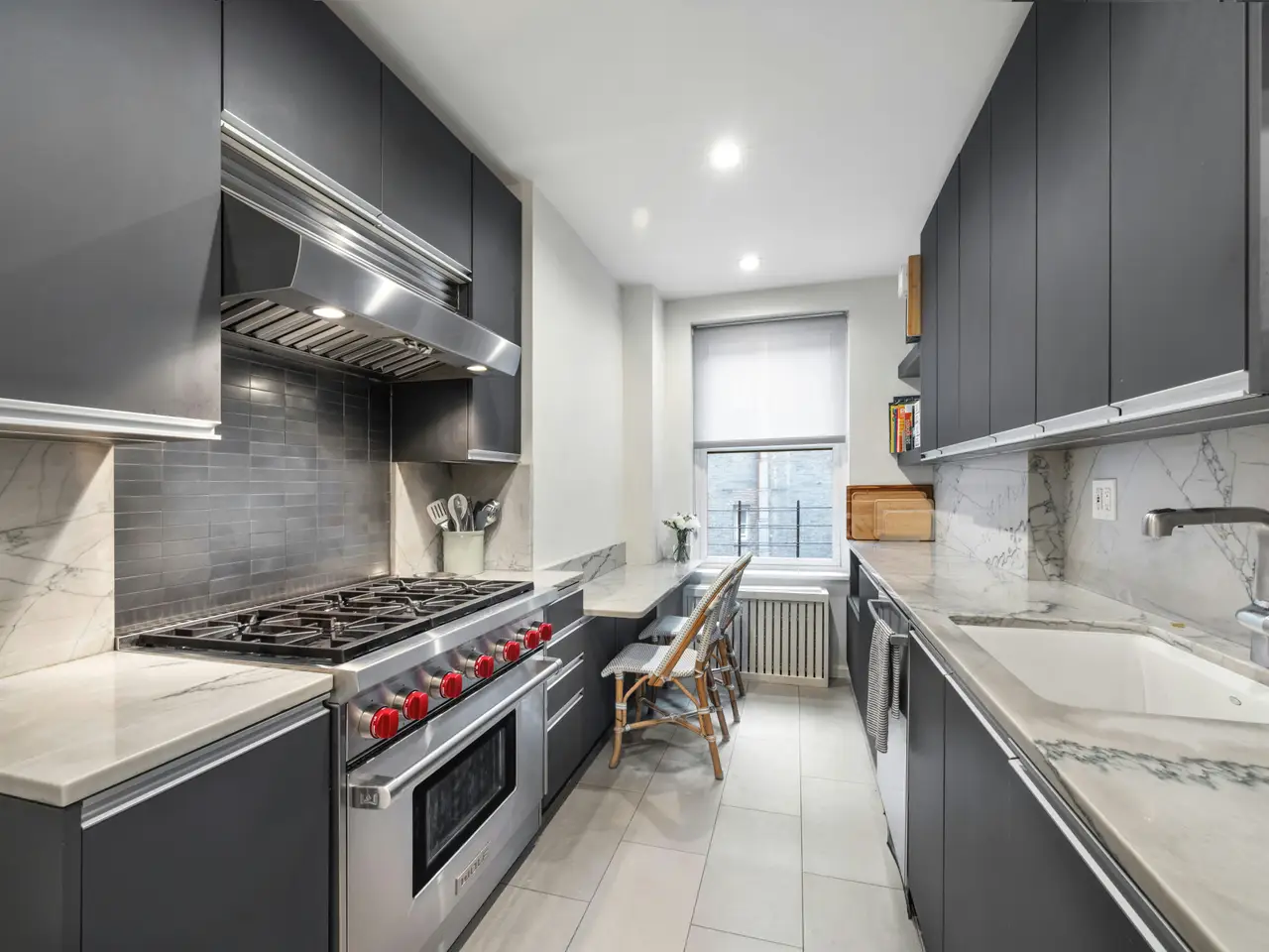 Move right into this glamorous prewar "Classic 7" recently renovated and designed by award-winning, AD100 designer, Giancarlo Valle. This spacious and sunny, south-facing home has approximately 9'5" ceilings, pretty treetop views and is in one of the most convenient Upper East Side locations just off Park Avenue. The layout of this elegant residence is thoughtful and timeless. A gracious entry foyer opens into a large living room with oversized mullioned windows that let in lots of light and the formal dining room is adjacent making the space perfect for both elegant entertaining and easy everyday living. An attractive hallway gracefully separates the entertaining spaces from the bedroom wing. All 3 bedrooms are bigger and brighter than typically found in this size of a home and the marble windowed bathrooms are sophisticated and functional. The eat-in kitchen boasts white macauba quartzite slab counters, a custom stainless steel backsplash, a bounty of cabinets and top-shelf appliances by Wolf (gas stove, oven and vented hood), Bosch (dishwasher) and Subzero (refrigerator.) Nearby is the staff room - a bonus space ideal as an office or nursery with a new electric washer and vented dryer. Other details include thru wall air conditioning, classic moldings, herringbone hardwood floors and a decorative plaster fireplace. Built in 1927, this full-service doorman building is pet friendly and offers a planted roof deck, live-in resident manager, central laundry, bike room and a large private storage space that transfers with the home.