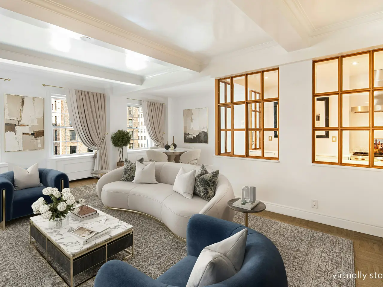 It feels like Paris when you enter this mint condition full floor residence from the private elevator landing. The gallery leads you to the glamorous living room complete with built-in storage flanking the fireplace with marble mantel from the legendary Plaza Hotel. Both the living room and dining room face west over Park Avenue, with a view of New York's most distinguished neighborhood. The innovative renovation of the kitchen features glass and metal French windows which allows abundant light to filter in. The appliances include Wolf, Miele and SubZero as well as beautifully designed lacquer cabinetry. In a separate wing there are two generous bedrooms. The primary bedroom has a generous walk-in closet with dressing area and a stunning marble bathroom with a heated floor. The second bedroom also comes with generous closet space, a marble bathroom and an added bonus room which can be used as a home office or nursery. In addition there is a laundry room and guest bathroom. There is a heat and air conditioning system installed through-out the apartment plus generous storage space as well as a storage unit in the basement of the building that transfers with the sale. Built in 1931 by Arthur Paul Hess, 891 Park Avenue is a 15 unit boutique co-op with a brick facade and three story limestone base. Amenities include a live-in Resident Manager and Doorman on duty 24 hours Friday to Sunday and 7AM to 11PM Monday to Thursday. There is a semiannual real estate assessment of $11,235 and a 3% Flip Tax. The building allows 50% financing and pets with Board approval.