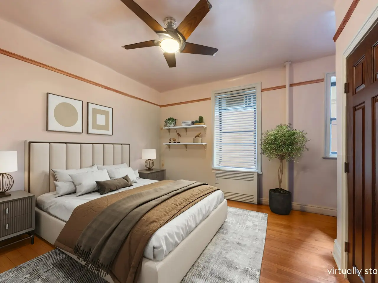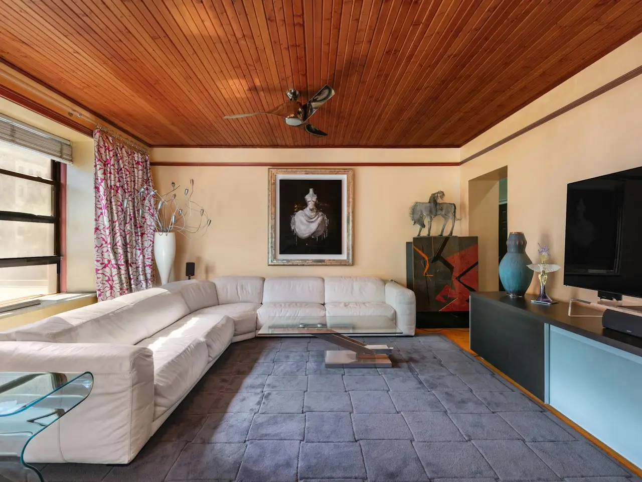 Location, Space and Value Showcase your artwork in the spacious living and dining "Great Room" with open northern exposures that allows sunlight to stream through the tall, over-sized windows with tree-top views. High 9' 6" ceilings highlight the sprawling layout of this 3-BR/ 2-Bath home with red oak flooring throughout. The chef's kitchen, a centerpiece of the apartment, has a large center island perfect for entertaining guests or enjoying a casual meal. It features beautiful Brazilian, Patagonia granite/quartzite counter-tops, a Viking 4 burner stove, Sub Zero fridge, new high quality contemporary cabinets plus a washer and dryer. The Primary Bedroom, with both east and west windows, has an ample closet, as well as a windowed en-suite bath with tumbled marble floors. The 2nd bathroom, also with a window, is a newly renovated contemporary show-stopper. The 2nd and 3rd bedrooms are very quiet and perfectly proportioned with great closets and windows. Additionally, there is a storage closet in the basement that comes with the apartment. In a financially sound, 7-story boutique co-op with 18 spacious homes and low monthly maintenance rates, pieds-a-terre and pets, are welcome. Amenities include a beautiful furnished roof deck with river views, a live-in resident manager, video security system with I-phone navigation and buzzer capability to accept packages, and bike storage. Just 1 block from the Express Train (with a short ride to mid-town or Wall Street) and only 2 blocks from beautiful Riverside Park - not to mention all the wonderful restaurants and nightlife the Upper West Side has to offer (especially the performing arts center 'Symphony Space', just on the corner) - this is truly an excellent value!