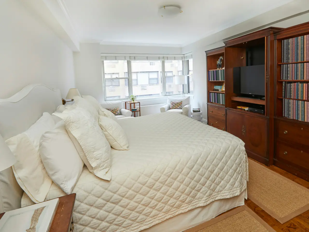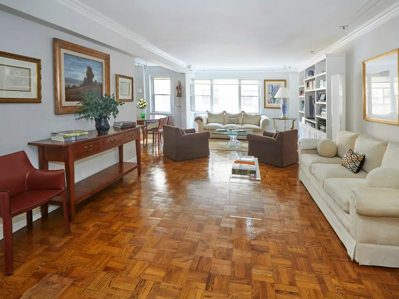 Pretty, spacious two (2) bedroom, two (2) marble bathroom apartment. The kitchen features a Sub-Zero refrigerator and black absolute granite counter tops. There are beautiful crown moldings throughout. The apartment faces South into the exquisite gardens and allows for peaceful, quiet living. 1025 Fifth Avenue is a white glove, full-service building with 24 hour doorman and concierge across from The Metropolitan Museum of Art. Amenities include a state-of-the-art gym, a lending library, and garage with reduced rates for shareholders. Pets and washer/dryers are permitted with board approval. 75% financing and a 2% flip tax paid by the buyer.