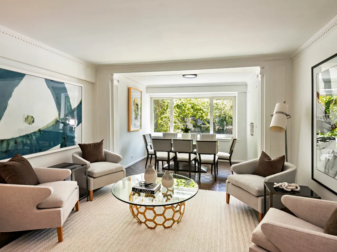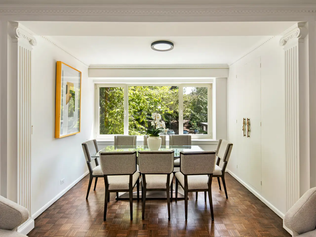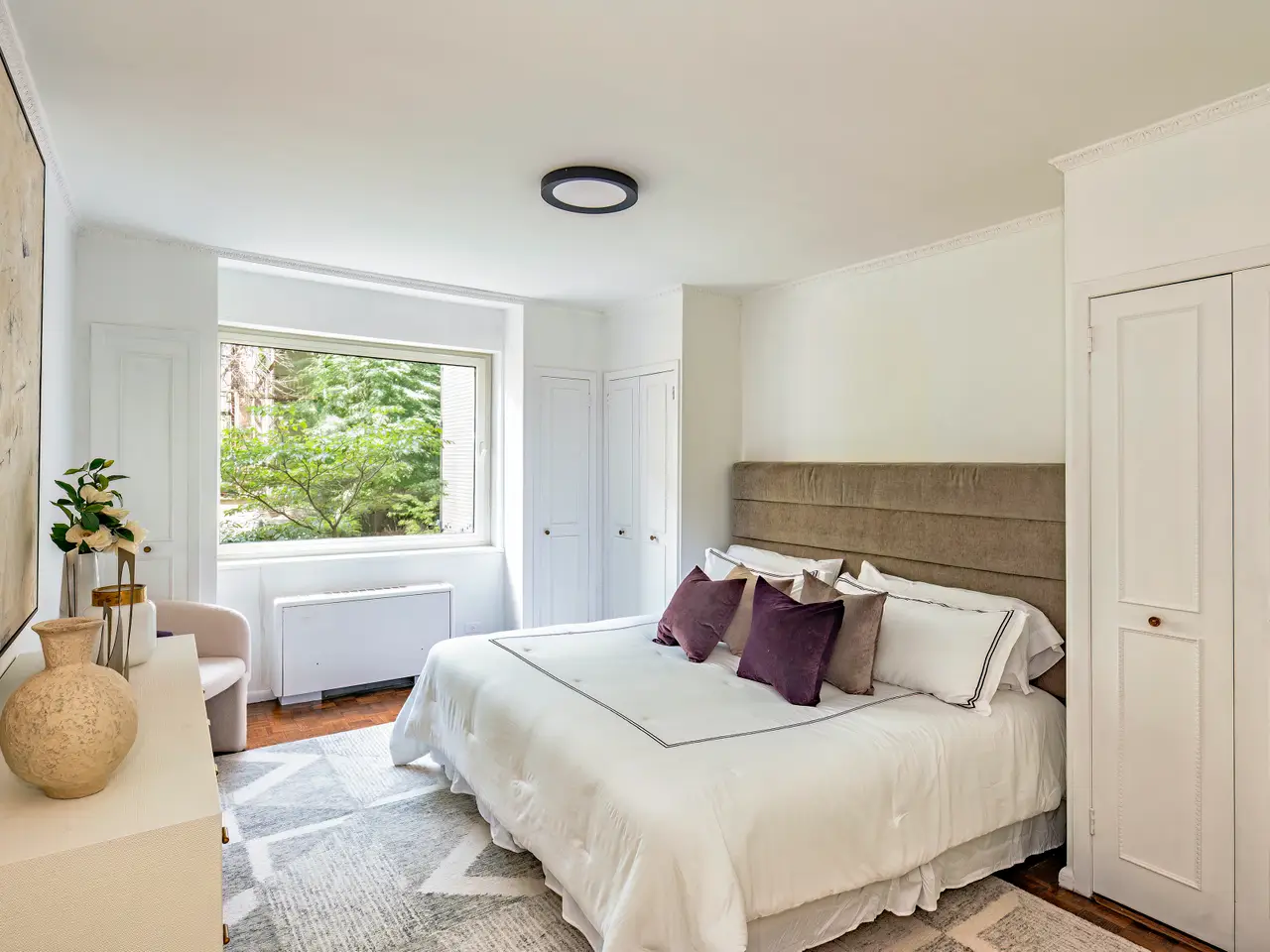 Overlooking the greenery of Gracie Mansion, Apartment 2D is a sunny, spacious two bedroom home with both east and west facing windows. The apartment has just been painted and the public area floors redone. New flooring has been installed in the entrance gallery, kitchen and breakfast room; the beautiful parquet living room floor has been refinished. The current configuration has the two bedrooms and their shared bath off a private hallway. The living/dining/kitchen/breakfast room/powder room and entrance gallery flow in a way that is perfect for entertaining or everyday living. Upon entering Apartment 2D, there is a wall of three large closets to the left and a powder room to the right. Just beyond the gracious entrance gallery with its new flooring, there is a dining room/breakfast room which can also function as a home office-or both. There is a large walk-in pantry here with plenty of space for utilities or storage of any kind as well. Just beyond, the windowed kitchen faces west and overlooks the new architecturally landscaped garden. The nearly 31-foot dramatic living room serenely overlooks the trees on East End Avenue and the gardens of Gracie Mansion. There is plenty of space for several seating areas and a large dining table. Opposite and just beyond the living room, off a private hallway, are the two additional very well-proportioned bedrooms with large west-facing single pane tilt and turn windows. They share a center hall bathroom. The primary bedroom has extraordinary storage space with two large walk-in closets and three regular closets. There is a laundry room adjacent to the apartment and there is an additional laundry room in the basement. Additional amenities include the heated rooftop swimming pool, fitness center, bike room, attended garage with preferable rates for residents, the new garden with outdoor seating, playroom and library lounge with a pool table. A storage bin transfers with the apartment. There is central air conditioning and the apartment pays $241/month for electric. Pets are welcome. The highly coveted Gracie Towers is ideally located on the corner of East End Avenue and 88th street providing easy access to the East River Promenade. This is a well-designed building with a beautiful lobby. It is fully serviced with a 24-hour doorman, concierge, and live-in resident manager. Gracie Towers is nearby several grocery stores such as Heavenly Market, CTown Supermarket, Morton Williams and D'Agostino. There are endless options to grab coffee or a bite to eat; for example, there is Arturo, Felice 83, Penrose, Eat Pretty, Starbucks, and The Mansion.