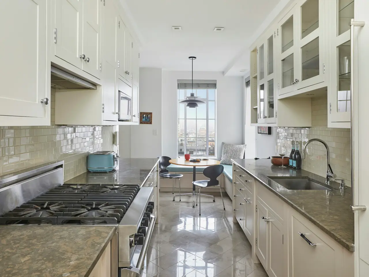 SUNNY PREWAR GEM Located in the prestigious Parc Vendome, this spacious residence offers approximately 1,645 square feet of elegant living space with open skyline views. THE APARTMENT - A grand, 19' x' 23' Great Room with open south and east exposures looking over the Clinton/Hell's Kitchen and Hudson Yards neighborhoods. - Tremendous sunlight from 11 elegant casement windows throughout. - Gorgeous hardwood floors and high beamed ceilings. -Gourmet kitchen with marble countertops, limestone floors, Subzero refrigeration, Viking gas range, Wolf warming drawer, and Miele dishwasher. - Over 235 square feet of storage between two primary bedroom closets, 2nd bedroom closet, a deep pantry with wine fridge and foyer storage with enough room to accommodate bikes, luggage and strollers. - Wonderful winged bedroom layout for privacy - Gracious primary suite featuring a windowed master bath with radiant heated marble floors, oversized shower, and double-sink vanity. - Split second bedroom with alcove study area and adjacent second bath. - Home office area with a 9' long built in desk and extensive file and book storage - In-Unit Stacked Miele washer dryer and adjacent linen closet. THE BUILDING - Built in 1931, the Park Vendome is a luxury complex of four buildings with separate entrances. - Full-time doorman and live-in Resident Manager. - Access to beautifully maintained formal gardens with a fountain. - Seasonal rooftop sun decks with breathtaking views. - Amenities include a Billiards Room, Music Room, Library, Card/Game Room, rentable banquet room, dining room, and kitchen for events - 24-hour laundry, storage bins, and bicycle storage available for a fee (pending availability). THE NEIGHBORHOOD - Moments from Columbus Circle, Whole Foods, Equinox, and the Jazz Center at Time Warner. - Close to the renowned dining and nightlife of Hell's Kitchen and the Upper West Side. - Near cultural landmarks such as Carnegie Hall and Broadway theaters.
