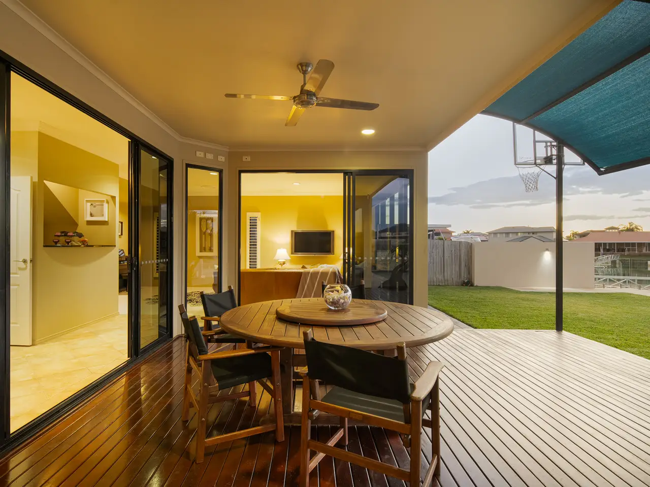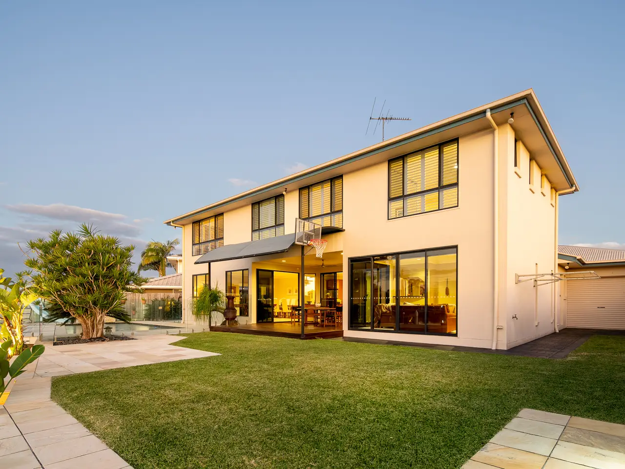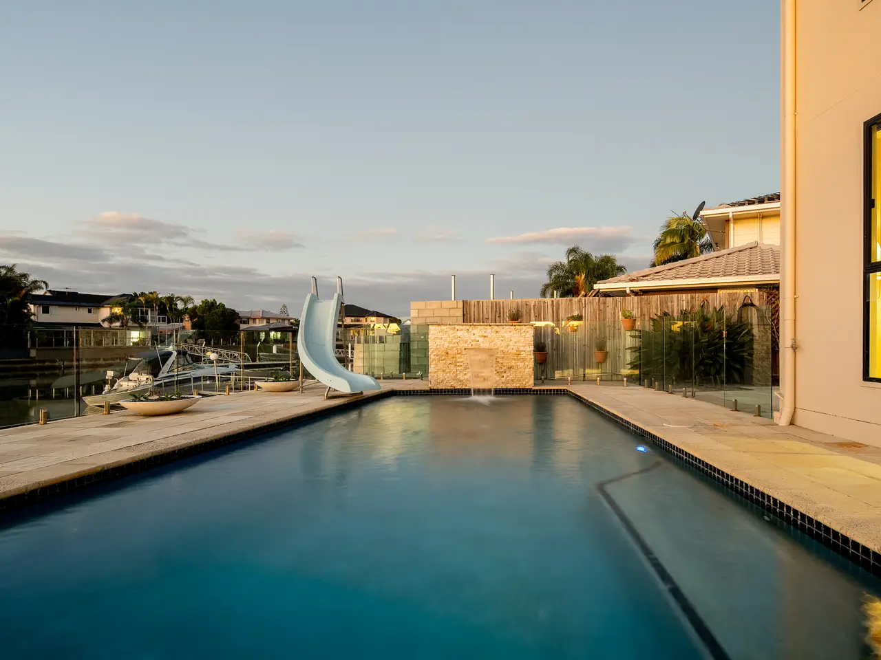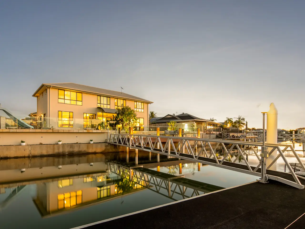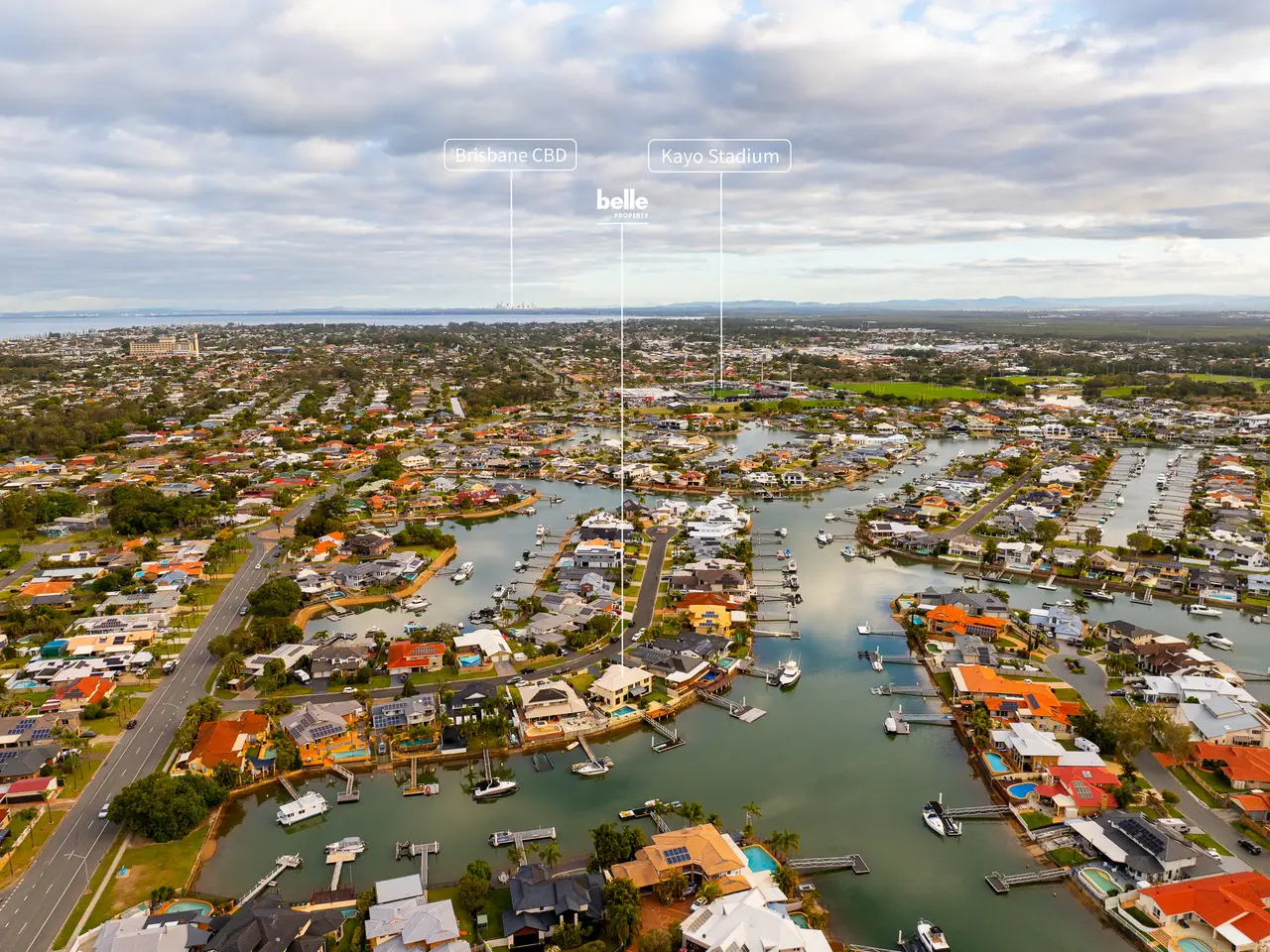 Dianne Clarke 0418 767 853 Mat Davey 0455 198 852 Perfectly positioned north facing on a wide Newport canal bend, this expansive family home delivers the ultimate in waterfront living and lifestyle. Generous proportions, multiple indoor-outdoor living zones and a sparkling pool by the water's edge ensure everyday comfort meets holiday-style luxury, while swift access to Moreton Bay creates a dream setting for boaties! Expansive family, living and dining zones stretch across the lower level, each designed to harness natural light and showcase uninterrupted water views whilst upstairs, another large lounge provides perfect family flexibility. The kitchen is both stylish and functional, with stone benches, quality Smeg appliances and custom timber cabinetry offering timeless warmth. Including a walk-in bar, designed for entertaining and everyday ease, it connects effortlessly with indoor and outdoor living while enjoying a clear line of sight to the canal. Delivering an unbeatable setting for outdoor entertaining, this home makes full use of its prime north facing waterfront position with an expansive overwater sun deck and private pontoon offering access to Moreton Bay. A large covered alfresco flows seamlessly from the interior living and dining zones, perfectly positioned to overlook the sparkling in-ground pool complete with waterslide. There's generous yard space both front and rear for kids and pets to enjoy, while lush landscaping and wraparound paving enhance the laid-back, holiday-at-home feel! Four built-in bedrooms are nestled upstairs, each including water views; whilst on the lower level, a fifth built-in bedroom has direct access to the spacious bathroom for perfect guest provision. The large master bedroom enjoys a generously sized walk-in robe and huge ensuite with dual vanity and bath whilst the main bathroom has been intelligently laid out for bustling family use. Additional features of this distinguished home include a study zone with built-in cabinetry, large laundry, ducted air-conditioning, gated utilities area, double remote garage with epoxy flooring and rear drive-through plus wide frontage for those needing to accommodate added vehicles or a caravan. Tucked into a quiet cul-de-sac in a premier Newport enclave, this exclusive address promises an exceptional coastal lifestyle for families. With the bay just moments away and quality schooling, parkland, and shopping precincts close by, it delivers the ideal balance of laid-back luxury and everyday convenience in one of the Peninsula's most coveted pockets. - 753m2 block - 450m2 of living under roof - Expansive 27m water frontage with private pontoon and northerly aspect - Exceptional family-sized residence on a wide canal bend with uninterrupted water views - Huge lounge room, light-filled dining, large living/rumpus & upstairs retreat - Entertainer's kitchen with quality appliances and timber cabinetry - Seamless indoor-outdoor flow to a large covered alfresco overlooking the water - Spectacular in-ground swimming pool with waterslide and stone waterfall feature - Grand overwater sun deck plus generous yard space front and rear - Fully equipped private 10m pontoon including winch offering easy access to Moreton Bay - Five built-in bedrooms including a deluxe master with huge ensuite and walk-in robe - Well-appointed family bathroom with smart layout plus third two way bathroom on lower level - Study zone with built-in desk - Spacious laundry with plenty of storage - Ducted air-conditioning, ceiling fans and new carpet to bedrooms & living - Double garage with epoxy flooring, storage and drive-through rear access - Quiet cul-de-sac address close to schools, shops, parkland and the bay - Short drive to Coles Dophins & Newport Market Place with a vast array of amenities including cafes, restaurants, groceries, pharmacy, gym, hair, beauty, and other retail stores LOCATED - 25km to Brisbane Airport - 35km to Brisbane's CBD - 15 minute drive to Westfield North Lakes, Ikea and Costco - 30 minute drive to Westfield Chermside - 45 minute drive to the Sunshine Coast Disclaimer: All information contained herein is gathered from reliable sources. However, we cannot guarantee its accuracy, and interested parties are advised to carry out their own investigations.