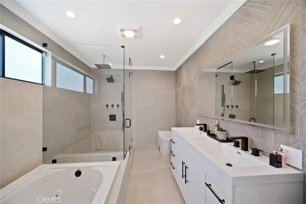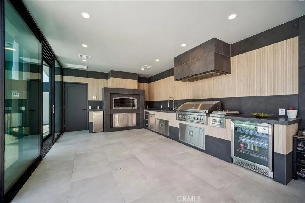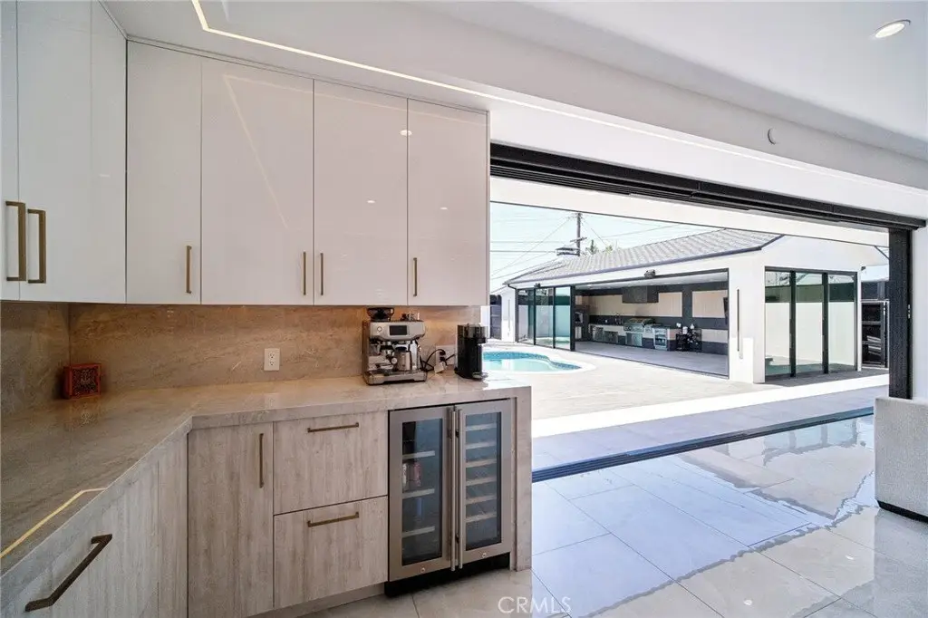 这座位于北好莱坞的大胆的欧式现代庄园是真正的建筑典范。它拥有私人大门,以清爽的黑白色调装饰,搭配总统级屋顶瓦片,给人留下了深刻的印象。一扇宏伟的玻璃枢轴门将您带入宽敞的 2,332 平方英尺的开放式概念室内,其特点是定制托盘天花板、氛围 LED 灯带、嵌入式照明、设计师瓷砖地板以及带有集成扬声器的极简主义无边际通风口,将创新与设计完美融合。定制厨师厨房配有精致的双色橱柜、一个带有大量内置储物空间的引人注目的 12 英尺瀑布岛、Taj Mahal 台面、内置不锈钢冰箱、Miele 电器以及一个隐藏式口袋门,确保流畅的流动。客厅围绕着一面抽象的壁炉墙展开,配有定制搁架和电壁炉。墙壁延伸到其框架之外,带有背光 LED 细节,营造出醒目的视觉效果和令人难忘的中心装饰。主卧套房提供私密的休憩空间,配备定制步入式衣帽间、水疗风格浴室以及通向葱郁后院的落地玻璃推拉门。三间卧室和三间浴室(包括两间套间)以及一间精心设计的化妆间,均铺设暖色木地板,并铺设设计师品牌瓷砖。装修完毕的车库包含一间半浴室和一个私密的洗衣区。前后院均经过精心设计,铺设了大型现代铺路砖,点缀着成熟的棕榈树和郁郁葱葱的景观,并以简洁的围栏围起,以增强私密性。后院营造出度假村般的氛围,设有波光粼粼的泳池、高架水疗中心以及一间615平方英尺(约57平方米)的泳池小屋,兼具多功能性和时尚感。令人印象深刻的七扇超过30英尺(约9米)长的推拉门系统是这片空间的亮点,最后一扇推拉门可完全堆叠,营造出室内外无缝衔接的氛围。泳池小屋还铺设了黑灰色调的竹制瓷砖,配备设施齐全的定制烧烤中心、设施齐全的浴室以及专门存放户外必需品的储物空间。此外,该物业还配备了全新的空调和供暖系统、两台林内燃气即热式热水器(一台用于主住宅,一台用于泳池小屋)以及全新安装的屋顶。这栋房屋精致、现代,建造精美,令人叹为观止,重新定义了北好莱坞中心地带的欧式现代生活。