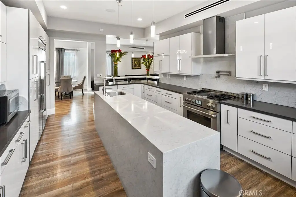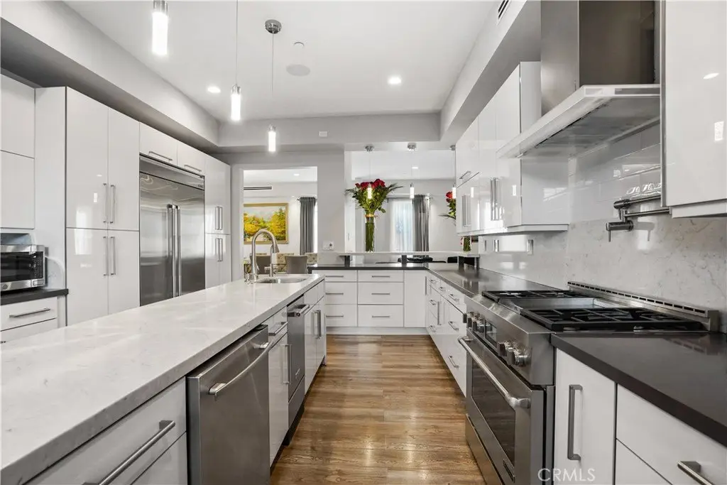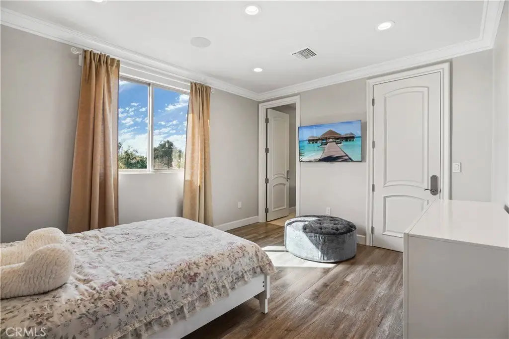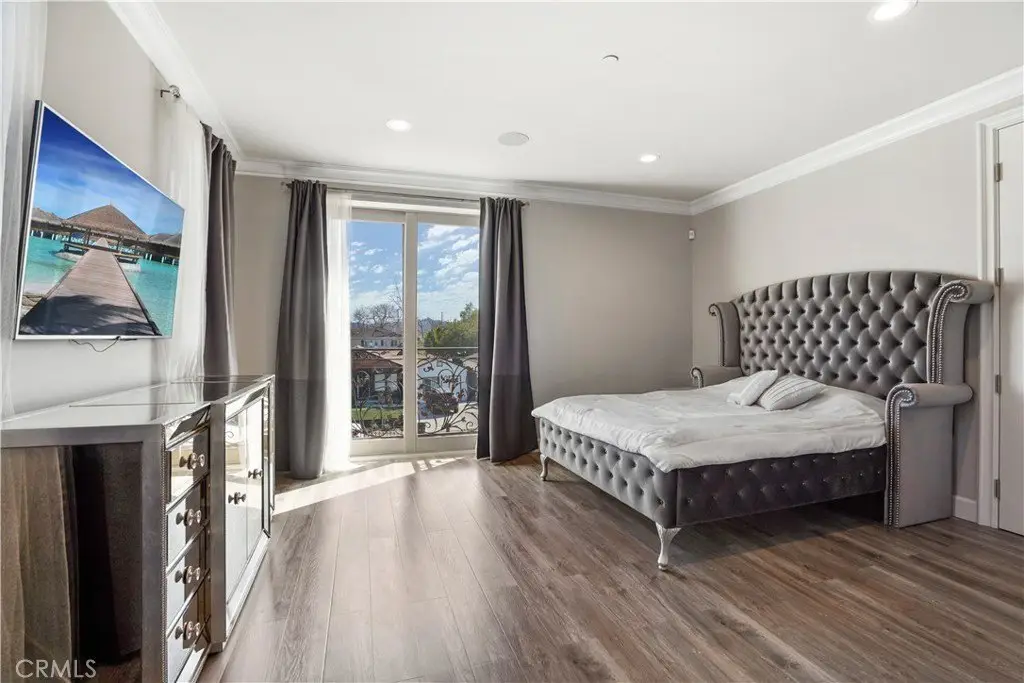 2016 custom built home, you will be wowed from the moment you walk through the double iron doors. Property features include 5 bedrooms with 1 downstairs bedroom, 5.5 bathrooms, high ceilings, recessed lighting, laminate flooring, iron stair railing, a formal living and dining room, custom paint and venetian plaster, a chef's kitchen including built-in fridge, an island, a built-in ice maker and quartz countertops. Upstairs you will find 4 additional bedrooms each with its bathroom and walk-in closet. Step into the master bedroom where you will be greeted by a 200sqft patio. Outside you will find a 15 by 60 covered patio for your gatherings, recessed lighting, more venetian plaster, an additional 400sqft permitted storage, firepits and so much more. Additional features include 2 tankless water heaters with circulation pumps, pre-installed equipment for solar panels, a 400 amp electrical panel and so much more. You must see to appreciate. Conveniently located near the new NoHo Arts District.