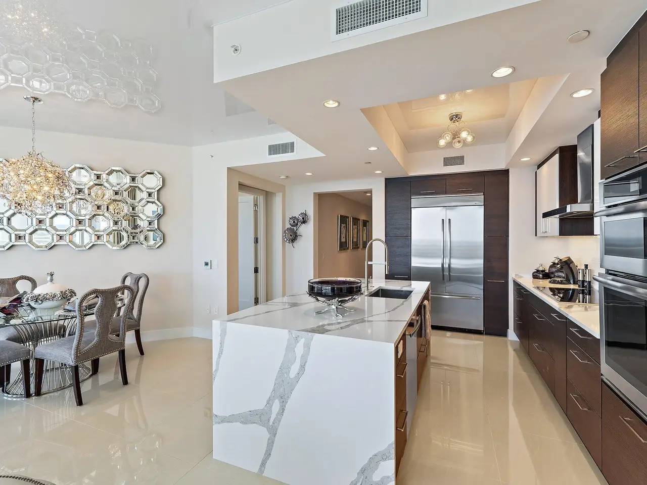 Enjoy amazing views to the ocean, Lake Worth Lagoon, and as far South as The Breakers Hotel in Palm Beach from this ultra-luxury ''Cobalt'' floor plan in Water Club. This unit has a den/office that could serve as a 3rd bedroom with use of the hall Power Room on those rare occasions when you have an extra guest. Best of all, Water Club has world class amenities like 24/7 manned and gated security, private elevator lobbies, under building parking, a private clubhouse with bar and billiards table, resort style pool, day docks, lap pool, fitness center with yoga/pilates studio, spa, fire pits, pickle ball court, guest suites, and more..