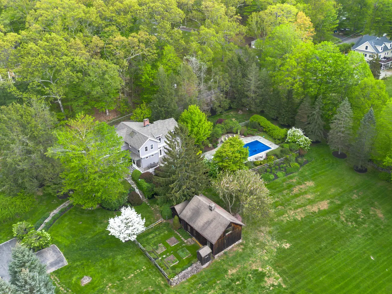 Style, Sophistication, and History in North Salem. A rare blend of timeless design and modern comfort, this Colonial Farmhouse in North Salem offers turn-key living in one of Westchester's most scenic and desirable settings. Meticulously updated to reflect its historic character with a modern flair, the home is as functional as it is beautiful. The first floor features a gracious entry hall that sets the tone for the rest of the home, leading to a modern chef's kitchen with high-end appliances, seamlessly connected to an adjoining family room, ideal for everyday living. A spacious dining area is perfect for hosting, while the sunken living room offers two distinct seating areas surrounding a large fireplace, creating the perfect atmosphere for intimate gatherings or larger celebrations. French doors open to an oversized porch, blending indoor and outdoor living with ease. The manicured grounds include a separate barn with a fully equipped studio, bedroom, and bath, ideal for guests, a home office, or creative space. Surrounded by mature trees, lush gardens, and a heated pool with automatic cover, the property offers complete privacy and natural beauty. Just minutes from local shops, restaurants, and conveniences, yet set in a peaceful and private location, this home is perfect as a weekend escape or a year-round retreat, where history, style, and comfort come together in perfect harmony.