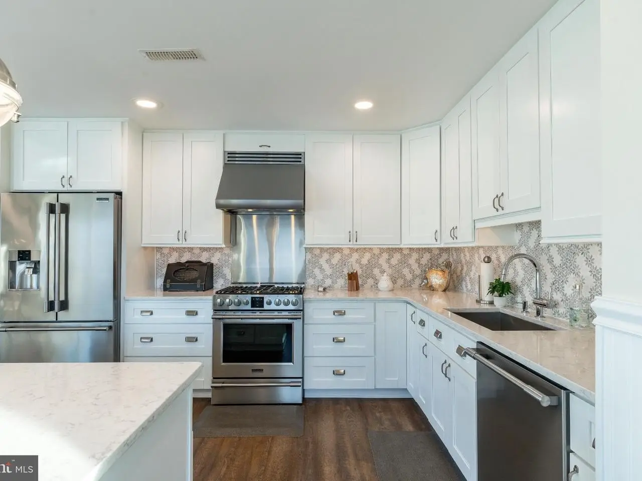 Your North Wildwood Sanctuary by the Sea! Step inside and feel the calm of coastal living wash over you. This stunning, fully updated North Wildwood retreat perfectly captures the magic of life by the ocean - where morning sunlight glimmers off the waves, the scent of salt air drifts through open doors, and every day feels like a seaside escape. For the current owners, this has been a peaceful haven - a place to gather with family, unwind after long days, and wake up to the soft sound of the surf. With 4 spacious bedrooms (including 2 luxurious master suites), 3 full baths, and 2 powder rooms, plus a finished lower-level suite with kitchenette and private entrance, this home blends comfort, elegance, and functionality in every square foot. The heart of the home - a bright, white chef's kitchen - is an entertainer's dream, featuring a 7.5' quartz island, Frigidaire Professional appliances, double pantries, an exquisite designer backsplash, and a coffee bar with a plumbed-in Keurig and wine fridge. It's the perfect place to cook, connect, and create memories. Open the sliders and let the sea breeze in as you relax on one of four expansive decks - three with sweeping ocean views - where sunrises are breathtaking, and Friday night fireworks feel close enough to touch. Upstairs, the primary suite is your private retreat in the sky, with panoramic ocean views and a marble spa bath designed for pure indulgence. Every detail of this home speaks of quality and care - from the gas fireplace with full stone surround to the custom window treatments, luxury vinyl flooring, and beautifully updated marble baths. The fenced backyard is ideal for entertaining, featuring a built-in stone dining table, outdoor shower, and lush new sod with irrigation. You'll love starting your mornings with coffee on the back deck, strolling across the street to Russo's Market, and being just steps from the beach and boardwalk. This is where luxury meets laid-back coastal charm - where every moment feels like vacation and every breeze reminds you you're home. Don't miss this rare opportunity to own a piece of paradise. Come experience your private beachside oasis - your North Wildwood dream home awaits!