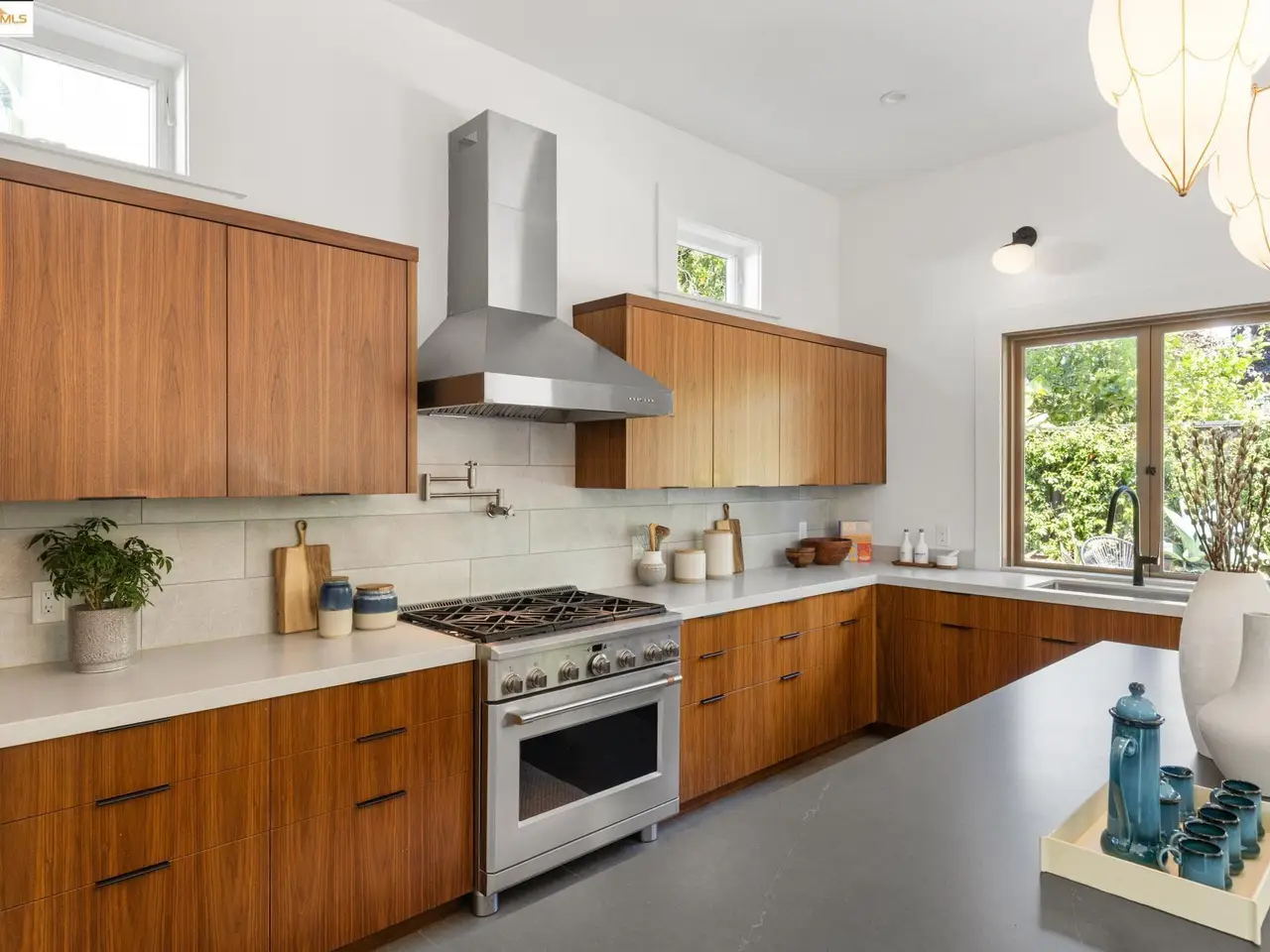 Welcome to this reimagined and remodeled home where stunning curb appeal meets sleek, high-end interiors. Modern landscaping, crisp white trim, bold black windows, and blooming bougainvillea set the stage. Inside, wide-plank wood floors, curated lighting, and designer finishes flow throughout. A sun-filled den and main-level bedroom and bath lead to a dramatic great room with soaring ceilings. The chef's kitchen features a central island for gathering, high end appliances, walk-in pantry, and two bifold doors which completely opens up the home to the landscaped backyard. Upstairs, you will find three bedrooms including a luxurious primary suite with balcony, walk-in closet, and spa bath with a huge designer soaking tub. Conveniently located close-by is a gracious bedroom, fun bath and another oversized en-suite room. A flexible alcove is ideal for a home-gym, office, play space or reading nook. Grand laundry room with so much storage! Detached storage shed and bike shed, EV charger, Nest thermostat and newer systems throughout. Fabulous North Oakland neighborhood with so much to offer: Bushrod and Dover Parks minutes away, trendy Temescal and Rockridge shops/restaurants, Whole Foods and BART! What more could you ask for!