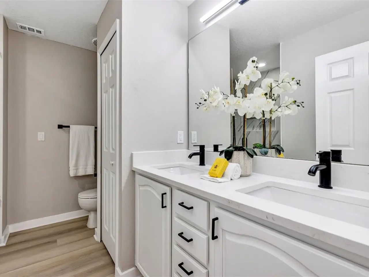 Welcome to this beautifully updated 4-bedroom, 2.5-bathroom single-family home, From the moment you walk in, you'll notice the luxury vinyl plank flooring flows seamlessly throughout, offering durability and elegance in every room. The open-concept living area is filled with natural light, enhanced by new ceiling fans and designer light fixtures that bring warmth and style to every gathering. At the heart of the home is the recently upgraded kitchen, featuring sparkling white Carrara quartz countertops and a sleek 4 inch tall backsplash. Need a quiet place to work from home? You’ll love the dedicated home office, thoughtfully designed for focus and productivity. When it's time to unwind, retreat to your private back patio, ideal for morning coffee or sunset dinners while providing great shade from the Florida heat. All bathrooms have been completely renovated with custom tile flooring and contemporary touches. With the split bedroom floorplan, you will find the primary bedroom on the main floor and on the second floor you are greeted by yet another living room space and the remaining 3 bedrooms. There’s plenty of room for your growing family, guests, or creative hobbies. And thanks to thoughtful upgrades throughout, you can move right in without lifting a finger. Rest easy knowing that the roof was just replaced in 2023 (with a transferable warranty) and HVAC was replaced in 2024. Minutes from top-rated schools, parks, shopping, and easy access to I-4, this home offers both convenience and connection to a vibrant community. Visit College Park's most beloved breakfast spot: Shaker's American Cafe; a staple in the community since 1993 that is less than a block away! or take a 3 minute walk in the opposite direction and visit the Jack Kerouac House: a haven for literary enthusiasts. There truly is something for everyone! Don’t miss the opportunity to make this Orlando gem yours.