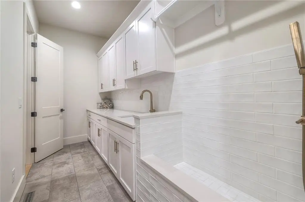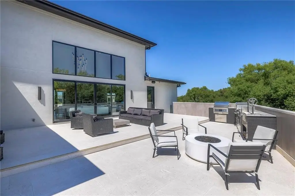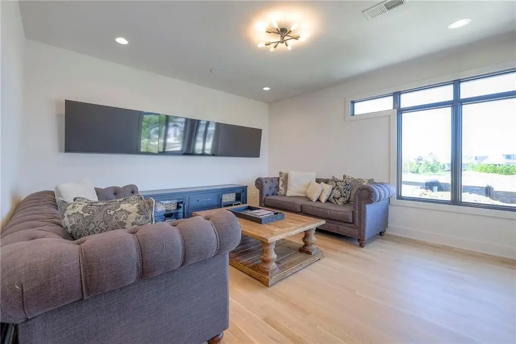 Discover modern elegance in this custom-built 1.5-story home, offering over 5,000 sq. ft. of living space on a private half-acre lot. This residence blends sophisticated design with everyday comfort. Step inside to soaring 20-foot ceilings, a dramatic floor-to-ceiling fireplace, and white oak hardwood floors throughout most of the home. The open main level is filled with natural light and features built-in speakers, Restoration Hardware light fixtures, and a seamless flow into the chef’s kitchen. Here you’ll find LG Signature appliances, quartz countertops, and an oversized walk-in pantry with sink and built-in microwave oven. The main-level primary suite is a retreat of its own with outdoor access, dual walk-in closets, and a spa-like bath with walk-in shower, soaker tub, and modern finishes. A second bedroom with ensuite bath, a dedicated office, large laundry with pet washing station, and an additional powder room complete the first floor. Upstairs offers three oversized secondary bedrooms - each with walk-in closets and ensuite baths - plus a versatile loft perfect for a TV room or office. The lower level is designed for wellness and future expansion, featuring a home gym, built-in infrared sauna, daylight/egress windows to add 2 bedrooms, & stubbed plumbing for an additional bath and bar. The garage is a showstopper in itself, with epoxied floors, tinted glass doors, an electric car charging setup, electric heater, battery backup garage door openers, & built-in cabinets. Step outside to your private backyard oasis -an entertainers dream. The sport design pool with automatic cover sits alongside a travertine marble tile patio that stays cool underfoot, a gas fire pit, and an outdoor kitchen loaded with a smoker, pizza oven, wood-fire grill, freezer/fridge, and griddle (all never used). Built-in speakers extend outside as well. Additional highlights include a dual-zone HVAC system, pre-wiring for a generator, & outstanding neighborhood amenities.