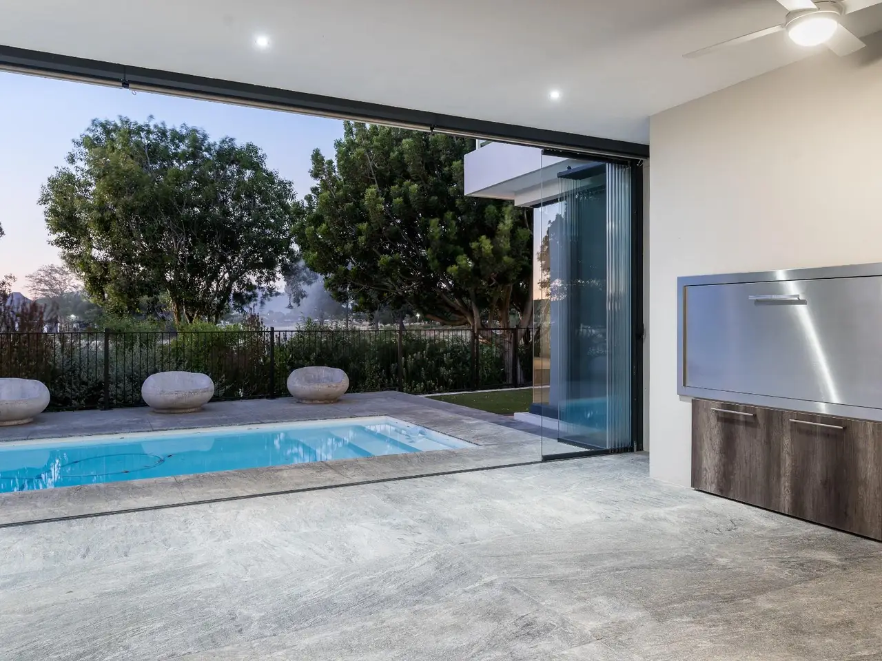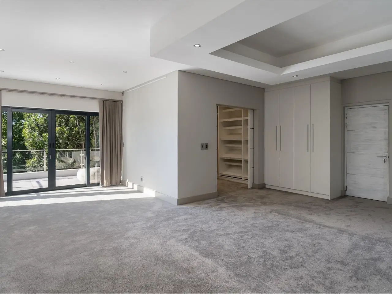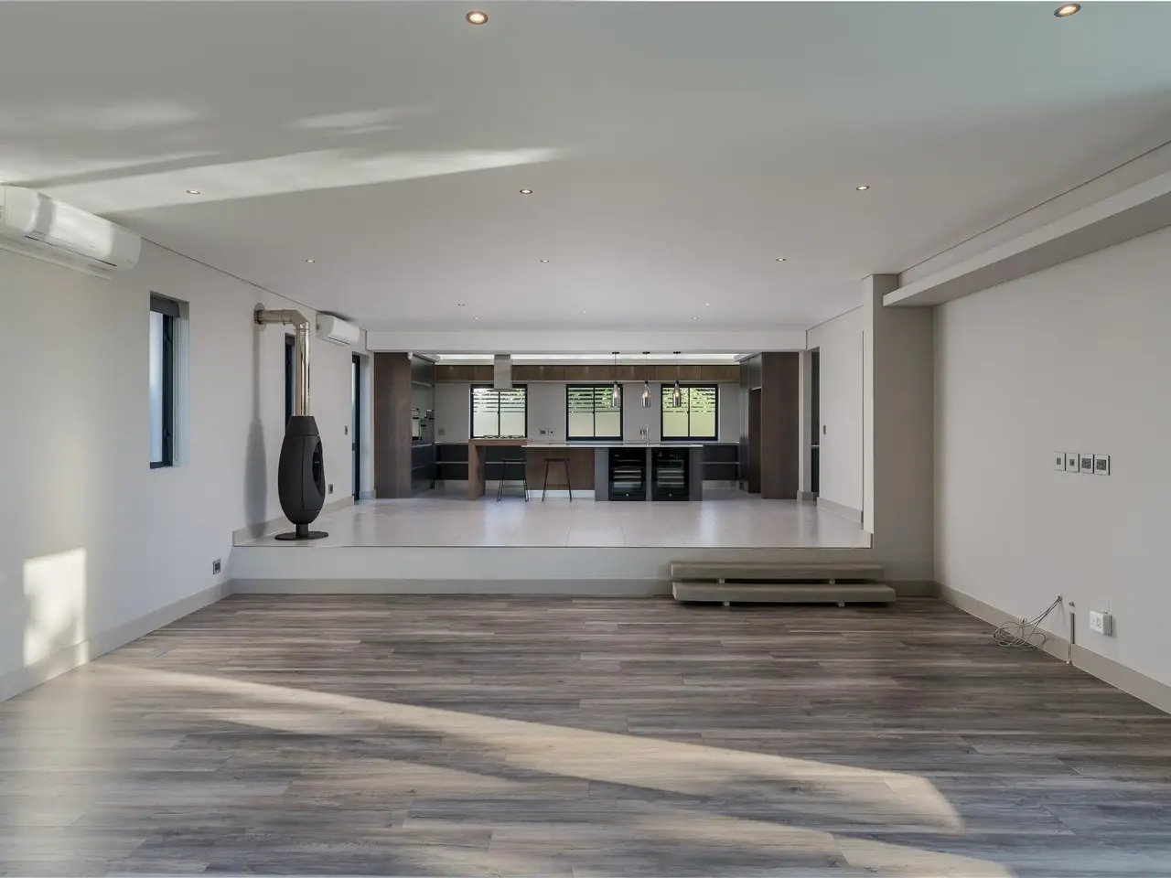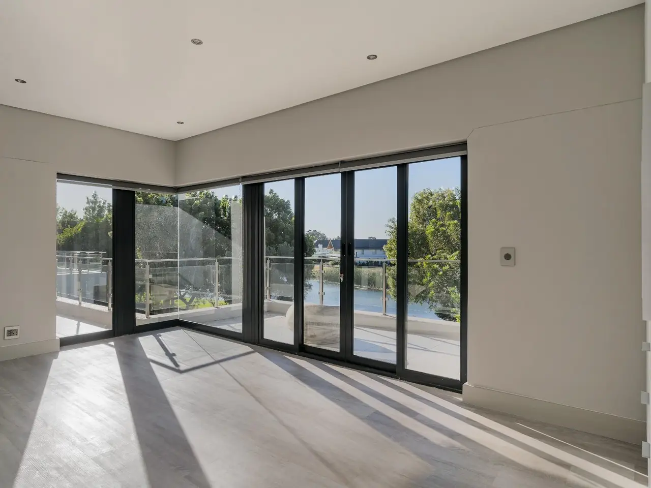 Indulge in modern living in this stunning four-bedroom, all-en-suite home nestled on the prestigious Pearl Valley Golf Estate. This north-facing property offers breathtaking views of the Jack Nicklaus Signature Golf Course. A sleek water feature welcomes you when you park in the driveway and entice you to enter the double volume foyer. Large glass panels and folding doors glide open to bring abundant natural light and views into the entertainment areas. Open-plan living areas designed for effortless entertaining and flows out to a private heated pool and expansive patio perfect for al fresco dining. The well designed and equipped modern kitchen caters for any occasion and completes the enviting feel of beautiful views to the green golf course. The property boasts four generously sized bedrooms, each with a luxurious en-suite bathroom. The main bedroom is located on the first floor of the property and spoils any stay with a private balcony overlooking the course, lake and Boland mountains. It also has a comfortable walk-in wardrobe and luxurious bathroom. Two more bedrooms are on the first floor, each with their own balcony and beautiful views. The fourth bedroom is on the ground level with access directly to the well landscaped and manicured garden. This property is in an immaculate condition, ready to welcome you home in a quiet Cul de Sac. Ideally located within walking distance of the Pearl Valley Clubhouse and facilities. Experience the ultimate in luxury living. Contact us today to schedule a private viewing.