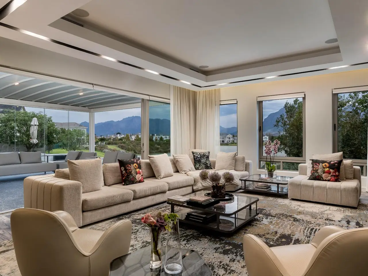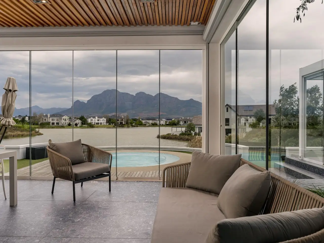 Exclusive Joint Mandate! This spectacular lakeside home, situated in a quiet cul-de-sac and bathed in natural light, incorporates contemporary minimalism with luxury and style. The first level of this light, bright and immaculate double storey masterpiece features seamless flow and generous use of space, including an ultra-modern open plan kitchen and dining area leading to a spacious lounge and feature wine cellar and an expansive entertainment area flooded with natural sunlight. The mountain and water views are visible from every inch of this magnificent home, including the intimate wind protected outdoor entertainment area, a perfect extension of the living areas, becomes one with the garden and lake. The master suite is a haven of extravagance and includes a private balcony, en-suite bathroom, and huge walk-in dressing room. Additional features include: - Garage space for 2 cars - Cinema room - Separate laundry room - Domestic quarters - Under ground water tank - Surround sound - Heated pool - Solar panels - Inverter - Generator - Double glazing - Steam room - Electric blinds
