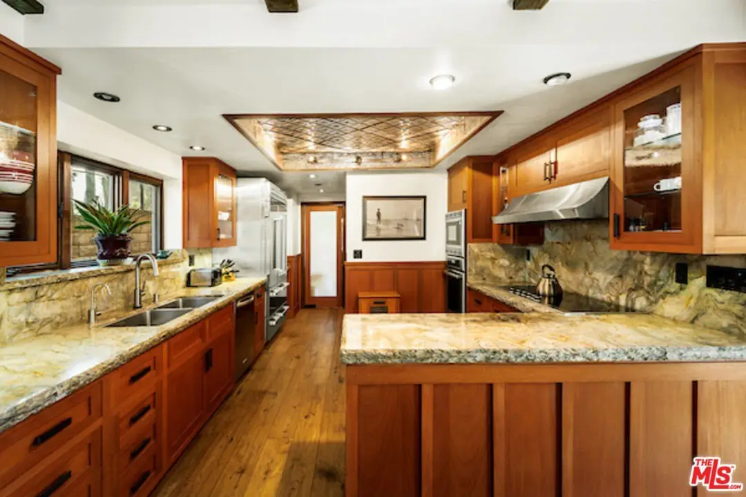 Come join the renewed sense of community in the Palisades Highlands. People are coming back and life seems almost normal here. This is a very warm home with many upgrades and generous use of wood and natural stone surfaces. The lower level has beautiful wide-plank oak floors throughout. The living room has a tongue and groove, beamed and vaulted ceiling. The kitchen is upgraded with a live-edge granite counter top, quality stainless steel appliances, induction cooktop and lots of counter and cabinet storage space. Four bedrooms and two bathrooms are all upstairs. The Primary bedroom has vaulted, tongue and groove ceiling, a unique pot belly stove gas space heater to cozy up to on those chilly winter nights. The Primary bath has a combo steam unit/bathtub/shower room that is very spa-like. The back yard has recently been completely redone with a privacy hedge and new large, low-maintenance synthetic lawn. Situated on a very quiet street, the views of the Santa Ynez Mountain Ridge brings in a peaceful nature vibe and sense of tranquility that sweeps you away from today's hustle bustle, hectic world. A fantastic amenity, the Santa Ynez Recreation Center, complete with 25 yard lap pool, kiddy pool, spa, children's playground, tennis and pickle ball courts, gym, ping-pong and billiards, is right around the corner. It is also very close to the endless network of hiking and biking trails of the Santa Monica Mountain Range, with several trailheads within a couple of minutes. Nearby local restaurants are also close and the new Caruso Center in the Palisades village is just a few minutes away. A great home in a great location that offers a great lifestyle.