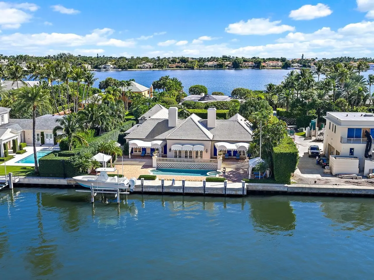 A private paradise and the ultimate tropical retreat, this elegant Estate boasts 100+/- feet on the Intracoastal Waterway, complete with a private davit for effortless waterfront living with offers stunning water views. Everglades Island is prized as one of Palm Beach's most exclusive and tranquil enclaves. With only one entry point, it provides an unmatched level of privacy offering an unparalleled lifestyle of luxury and recreation for a select few. Showcasing classic architecture defined by graceful symmetry, posh detailing, decorator volume ceilings and banks of French doors provide access to the waterfront loggias and serene heated pool. The water-view primary suite, a serene sanctuary, features an awning-covered terrace as well.