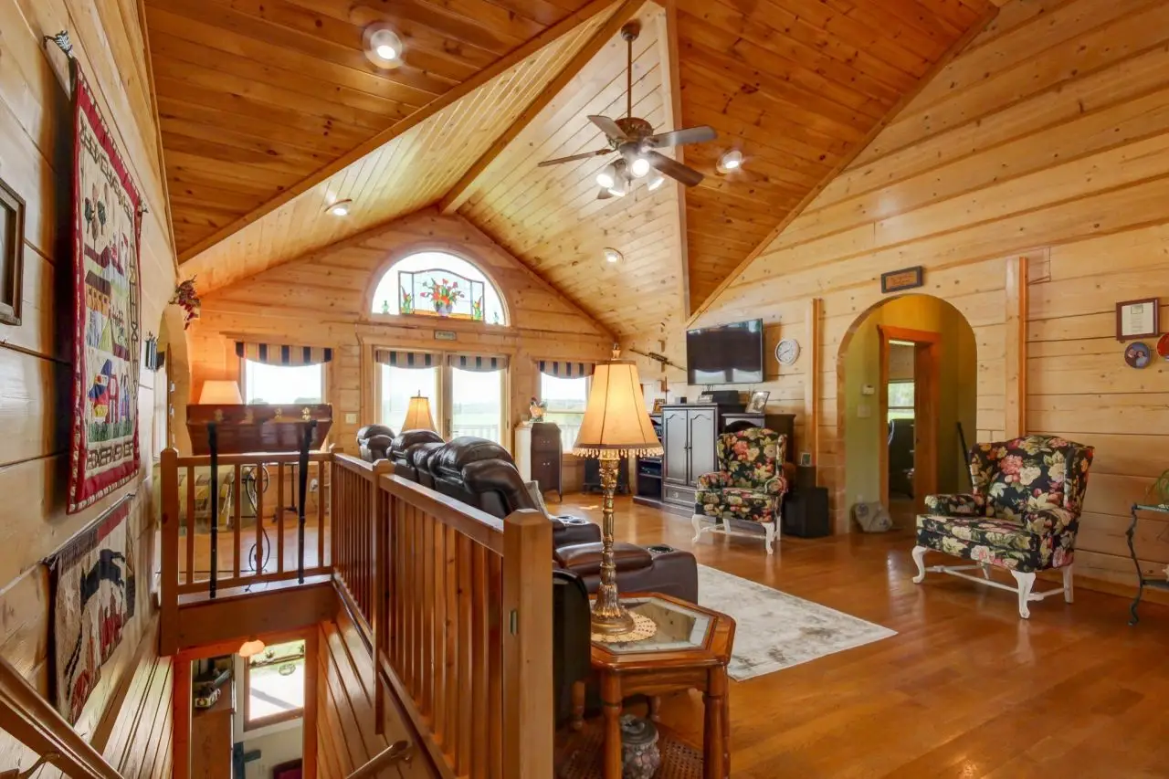 Welcome to Oak Ridge Farm - A Rare 62-Acre Countryside Retreat! Discover the perfect blend of rustic charm & modern comfort at Oak Ridge Farm, a fully operational 62-acre cattle farm nestled in a serene & scenic setting. With rolling pastures, five ponds (one stocked with large mouth bass),perimeter & cross-fencing, this property is ideal for livestock, recreation, or simply enjoying the peace of the countryside. You will love the beautiful Log Home with 2,400± SF (main residence) with wraparound porch & breathtaking views, Full Walkout Basement that is Framed & ready for your custom expansion. The Primary Suite offers Vaulted ceilings, walk-in closets, tiled shower, & whirlpool tub. The Chef's Kitchen has a spacious eat-in layout, full appliance package, pantry, plus a great view from the bay window. The Large Great Room has vaulted ceilings for an open and airy living space. The main level also offers a Laundry ROOM, 2nd Full Bath, & Office. Large room in basement can be 2nd Bedroom &/or Bonus Room. This home is very Energy-Efficient with Geo-thermal heating & cooling for year-round comfort. This property also offers a separate guest cabin featuring 2 beds, 2 baths, and living area - great for visitors or potential short-term rental. Additional structures include a 70 x 60-foot livestock-ready barn with stalls, chutes, and ample storage. A 52x32 workshop with half bath, water, airline hookups, and separate 200-amp service - ideal for woodworking, metalworking, or a home business plus a 14 ft covered equipment storage area. We haven't forgotten your cars-3 car detached log garage! Whether you're looking for a peaceful retreat, a multi-generational living arrangement, or income-producing potential, Oak Ridge Farm offers endless possibilities. With numerous outbuildings, spectacular views, and unmatched privacy, this property is truly one-of-a-kind.