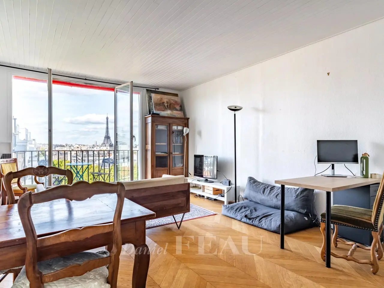 This 80 sqm apartment on the 7th floor of a relatively recent building includes a living/reception room opening onto a balcony commanding a view of the Eiffel Tower, a kitchen (open-plan would be possible), two peaceful bedrooms, a spacious bathroom and a wc. A second shower room would be possible. Cellar. A parking space nearby is available at extra cost.