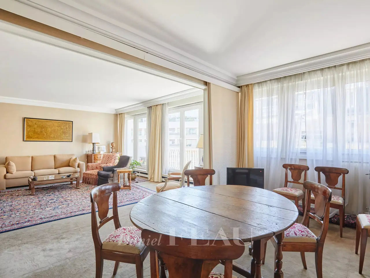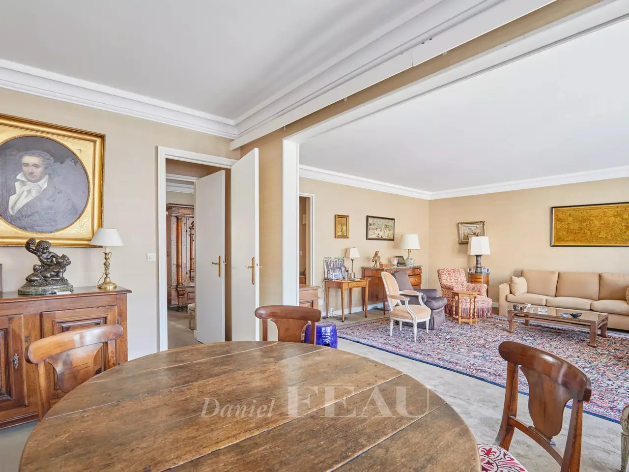 Sole Agent. Auteuil South, Exelmans neighbourhood. This bright 128 sqm family apartment is on the 6th floor of a well-maintained mid 20th century building. It includes a double living/reception room opening onto a wide continuous balcony, a dining room, a kitchen with a pantry and a utility area, three bedrooms one with a bathroom, a shower room/wc and a separate wc. The dining room could create a 4th bedroom if possible. Ample fitted storage space. With a cellar. A parking space in the building may be acquired.